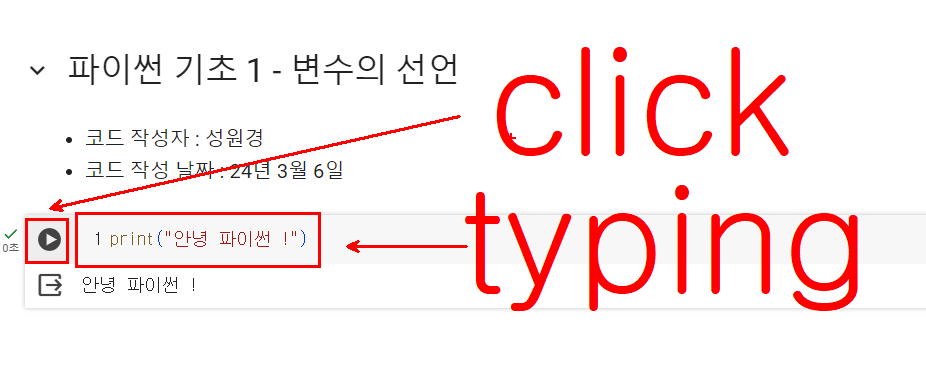 | 2강. 변수과 리스트 선언 한번 더 복습해 보자. (0) | 2024.03.12 |