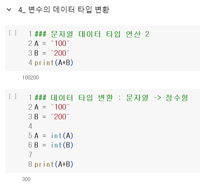 아래 링크에서 02-1 숫자형, 02-2 문자열 자료형, 02-3 리스트 자료형을 보며 스스로 공부해 보자. 새롭게 알게된 내용은 직접 코랩에서 코드를 동작시켜 보거나 노션에 정리하여 기록해 두자.