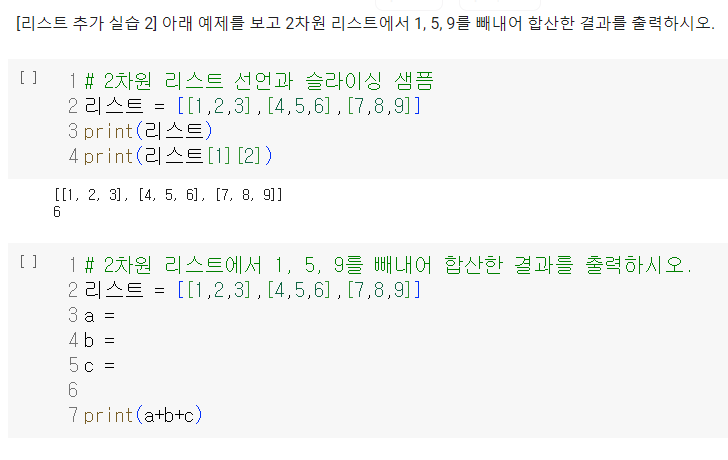 아래 코드를 완성시킨 뒤 동작시켜보자