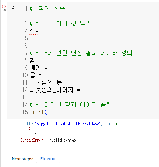 아래 코드를 완성시킨 뒤 동작시켜보자