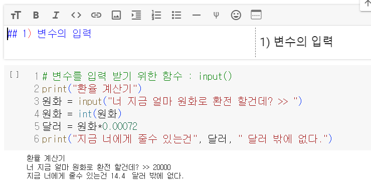 2. 오늘도 일단 따라서 타이핑 해보자. input 함수를 돌릴때는 직접 데이터를 넣고 엔터를 쳐보자.
