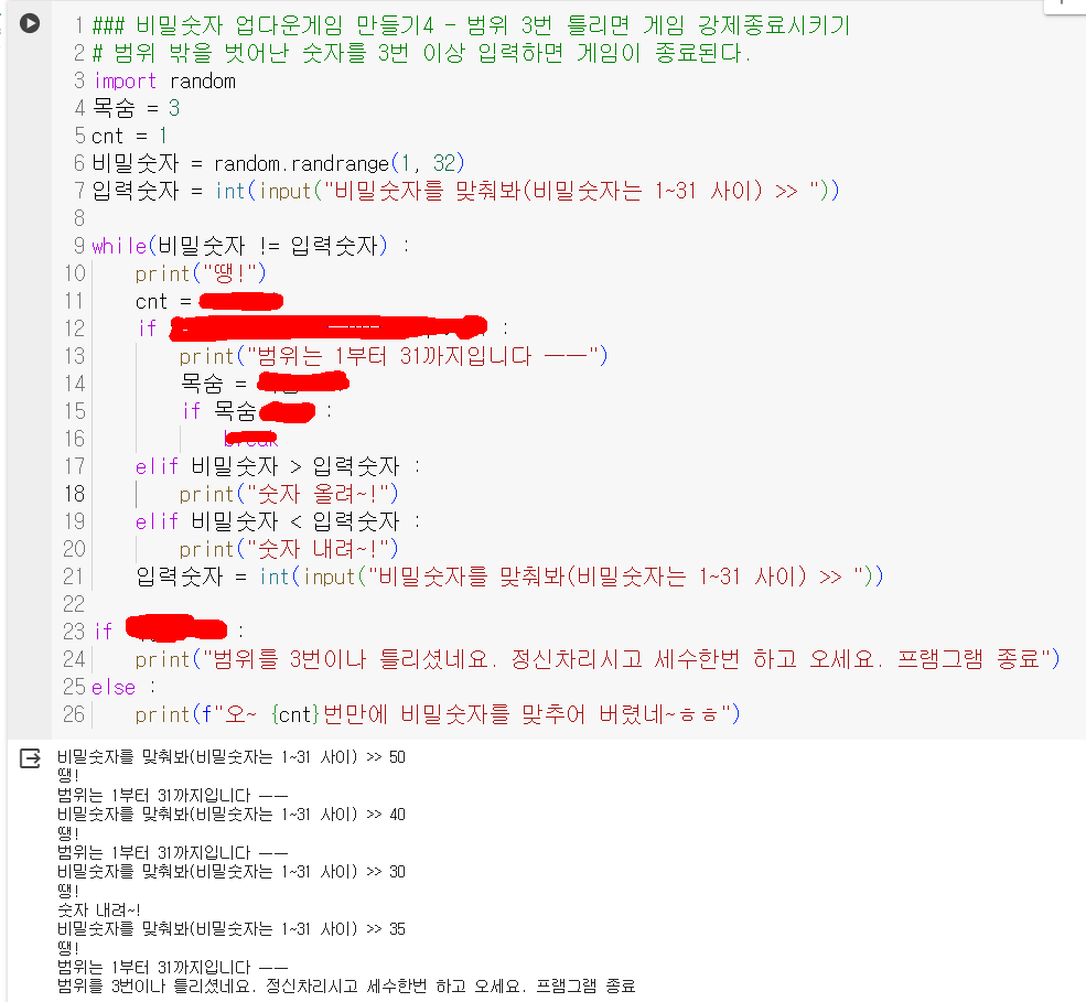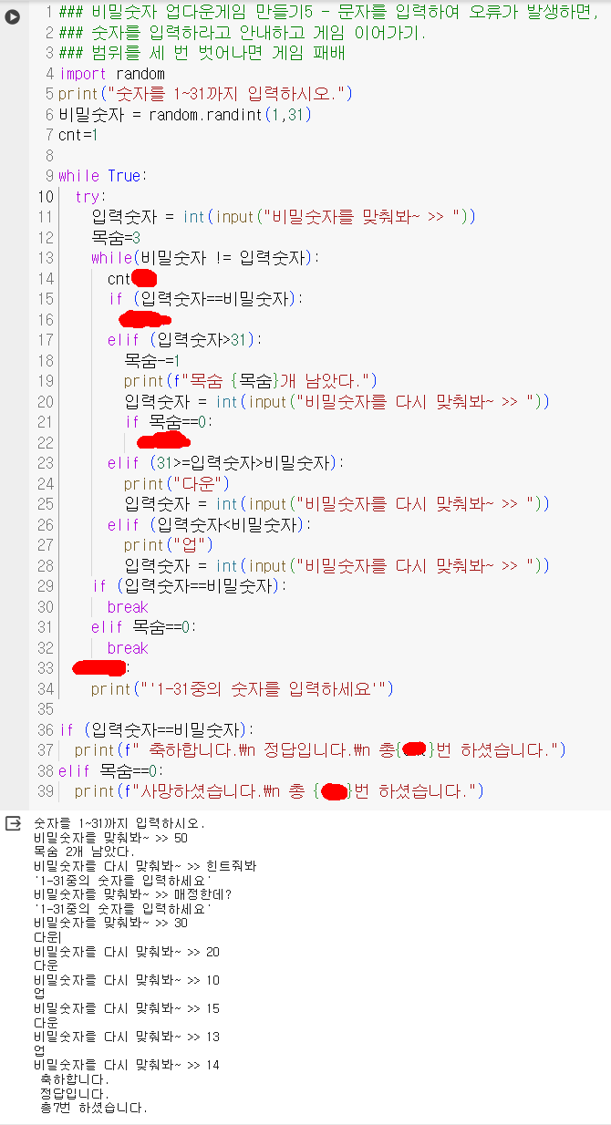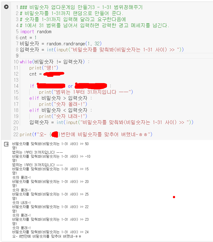 업그레이드 3. 비밀숫자를 1~31 범위내에서 램덤으로 만들어 주고, 사용자 입력을 1~31로 제한한다.