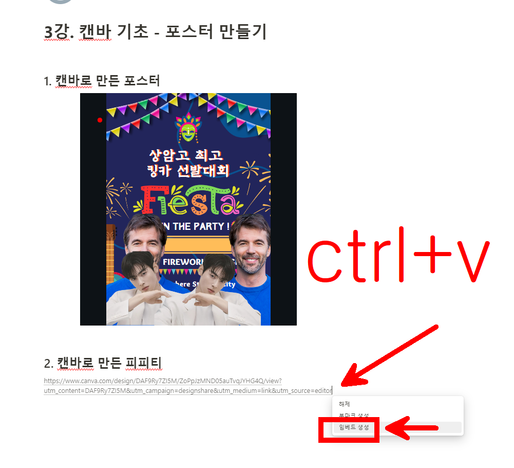노션에 붙여 넣는다. 이때 임베드 생성으로 붙여 넣는다.