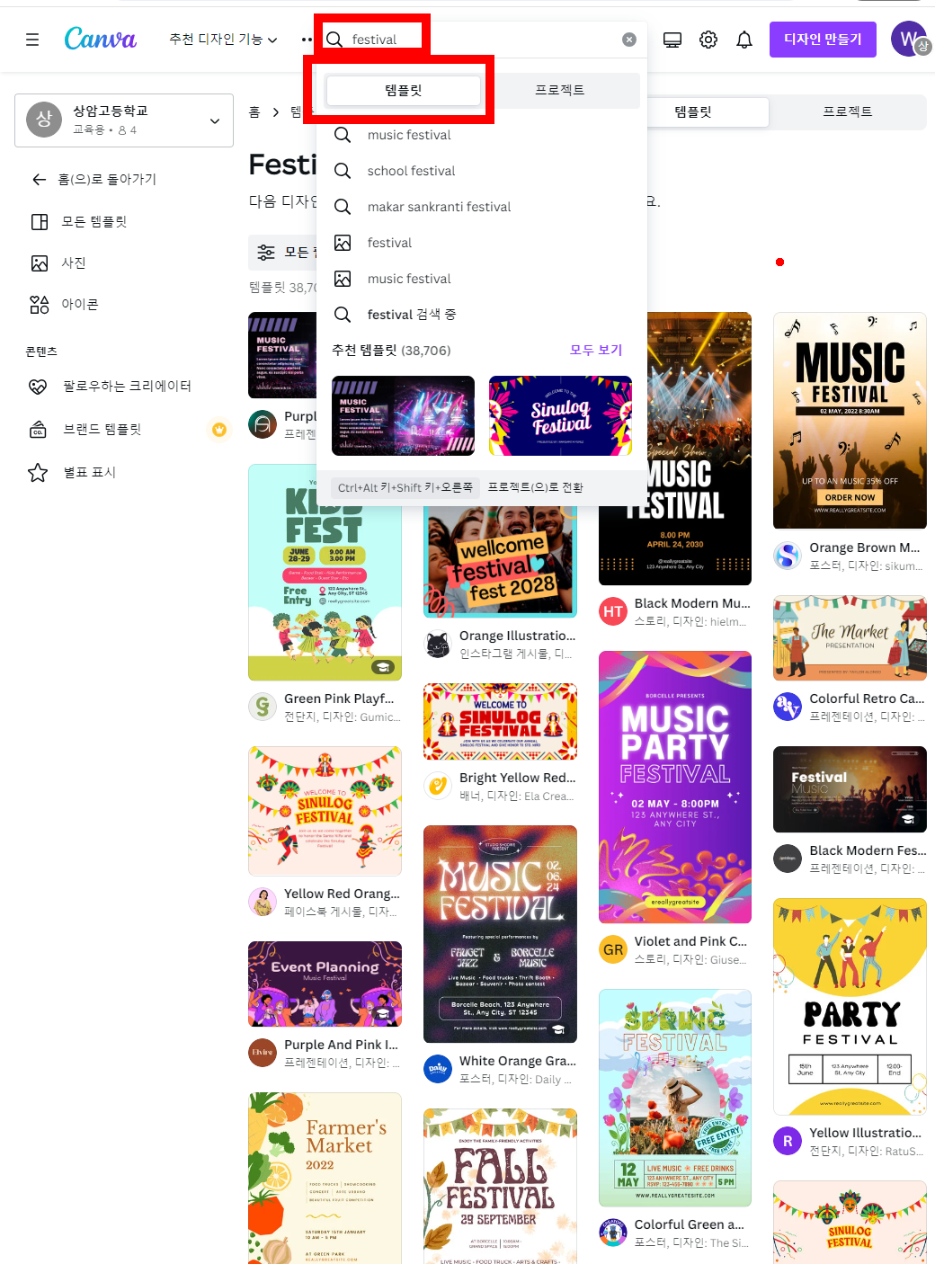 캔바(canva) 상암고등학교 교육용 계정 가입 링크