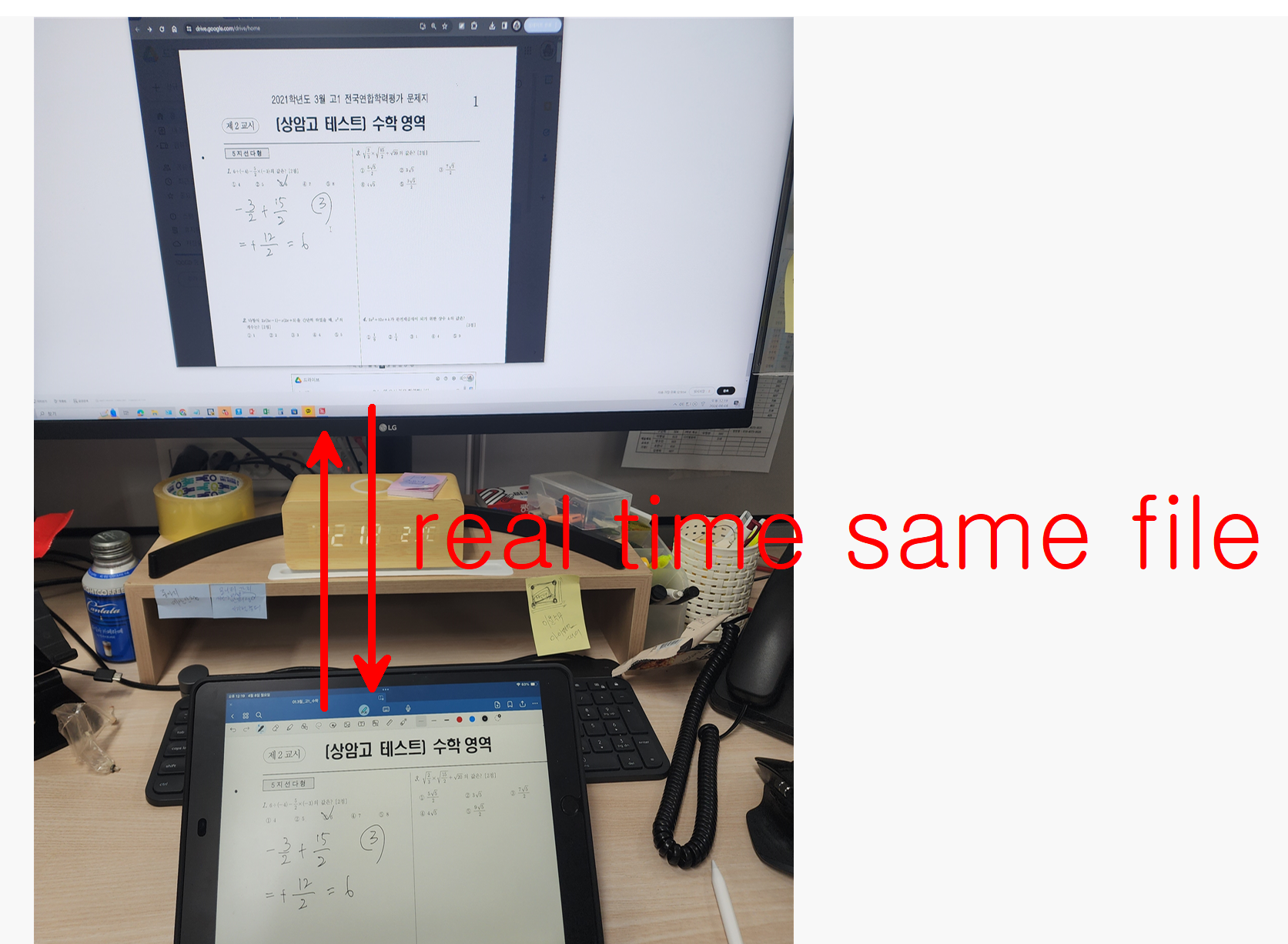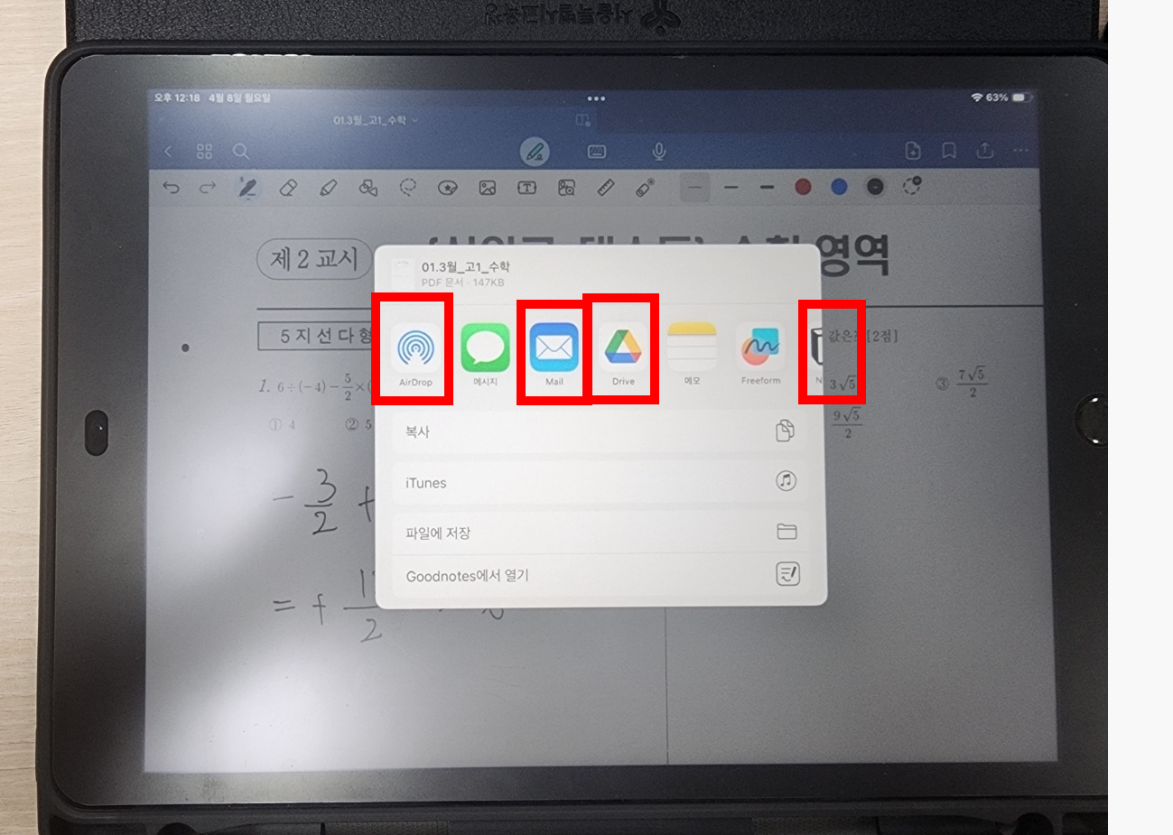 구글드라이브의 pdf 파일은 실시간으로(약1분 딜레이 있음) 굿노트 필기와 동기화가 되어 있을 것이다.