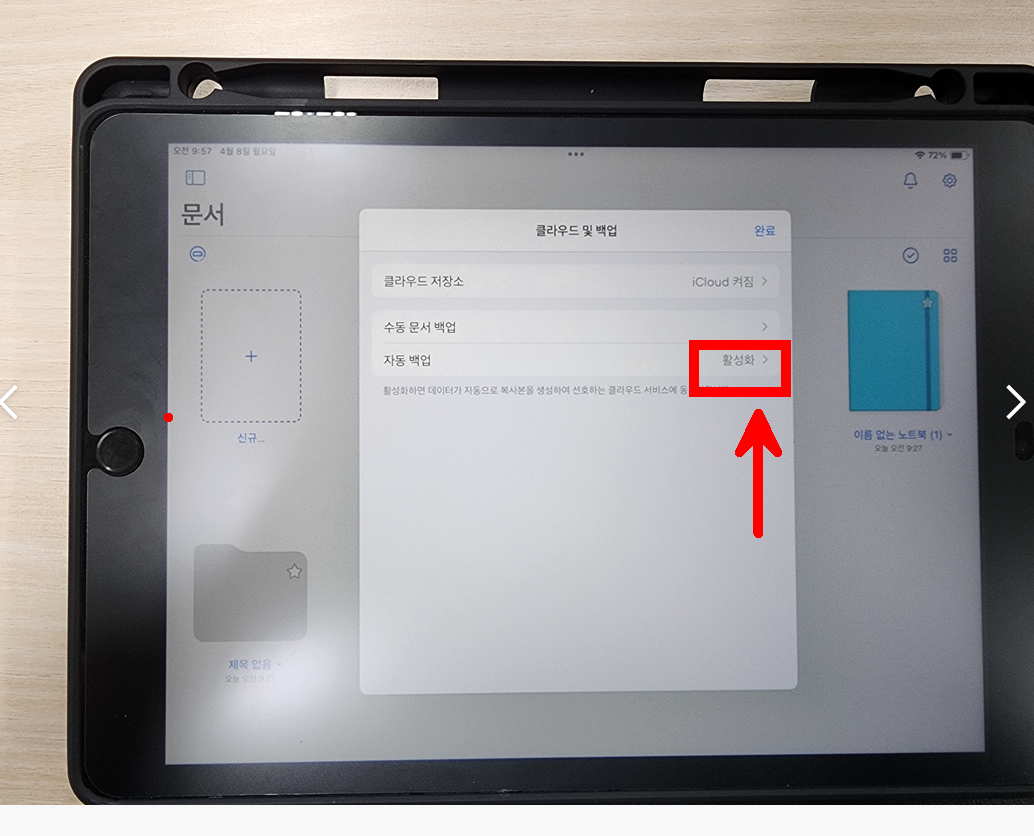 아이클라우드 동기화를 하고, 자동 백업 장소는 구글 드라이브로 지정해 준다.