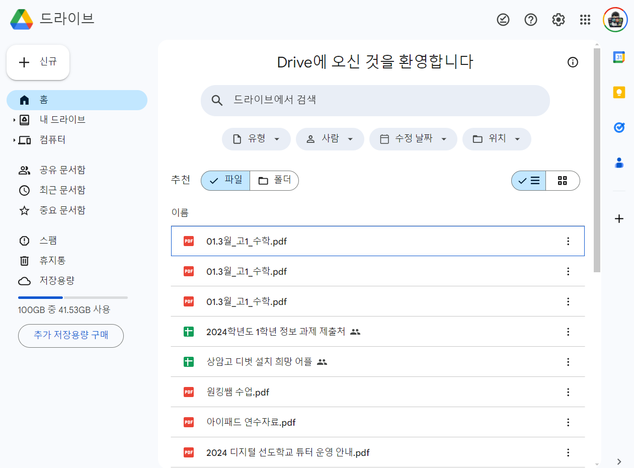 참고로, 상암고 계정은 200기가 저장용량이 기본으로 제공된다.