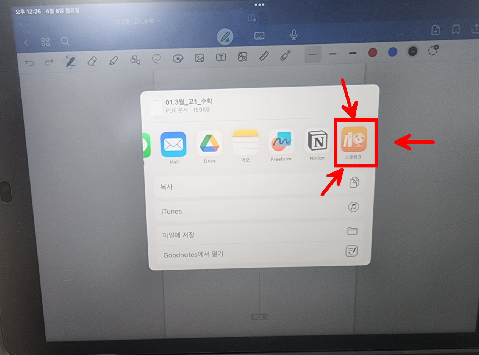 파일이 잘 열리고 필기도 잘 되는 것을 확인한다.