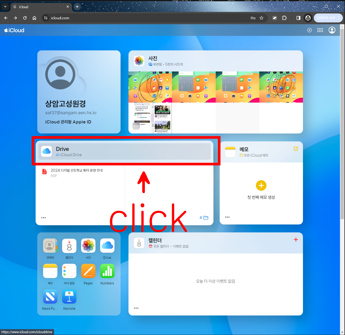 윈도우 PC에서 아래 사이트에 아이패드 애플계정으로 로그인 해보자.
