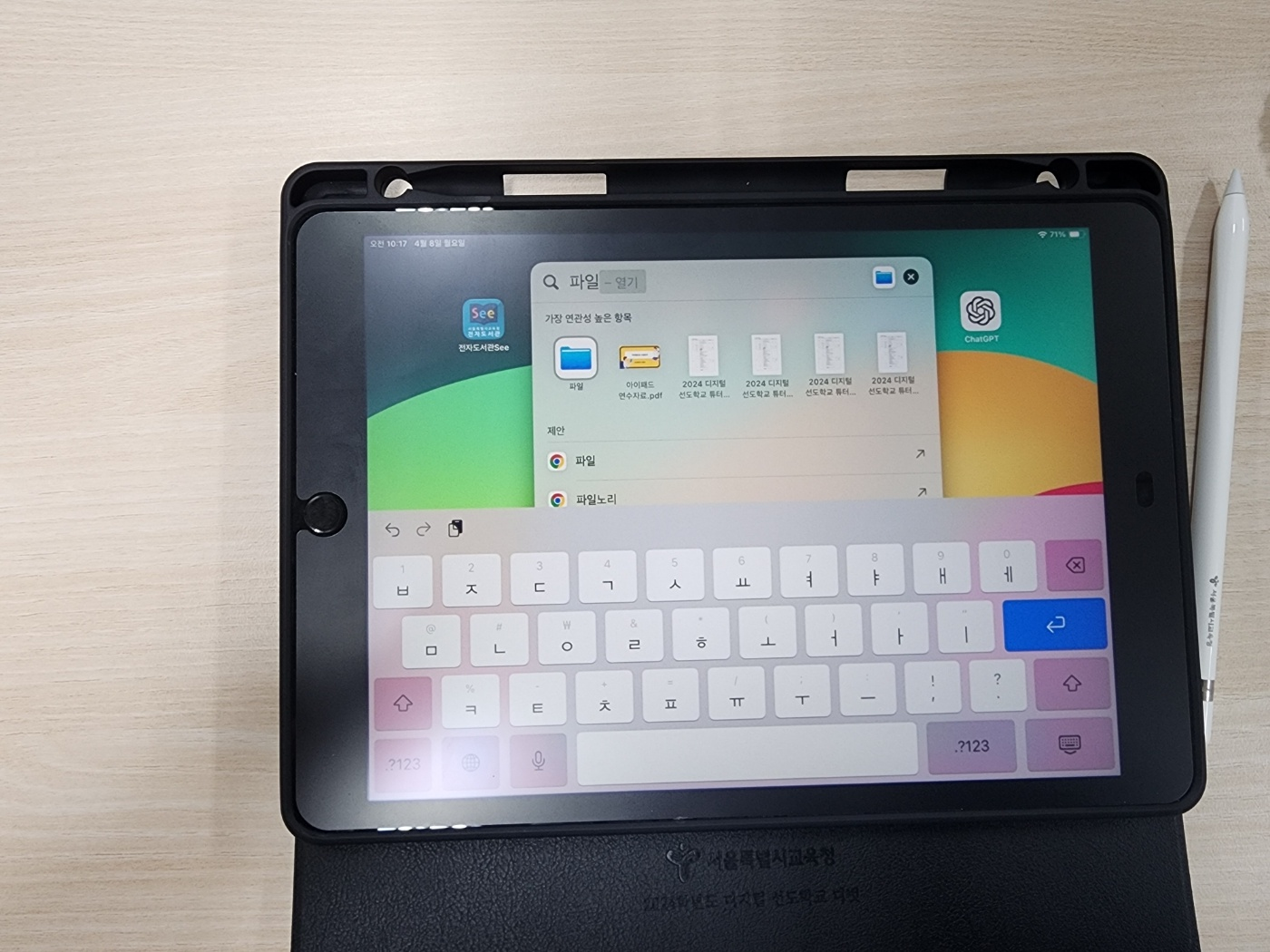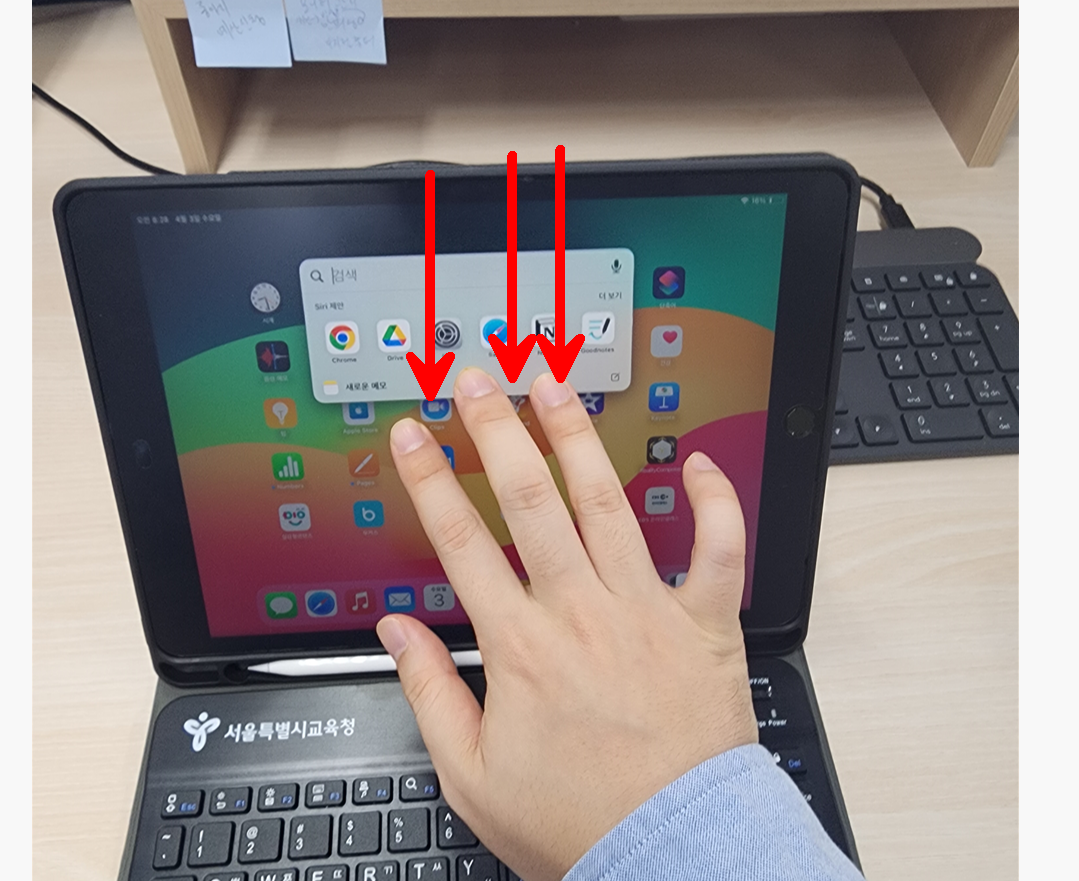 아이패드를 켜고 손가락 3개를 내려보자. 파일 검색기능이 활성화 될것이다.