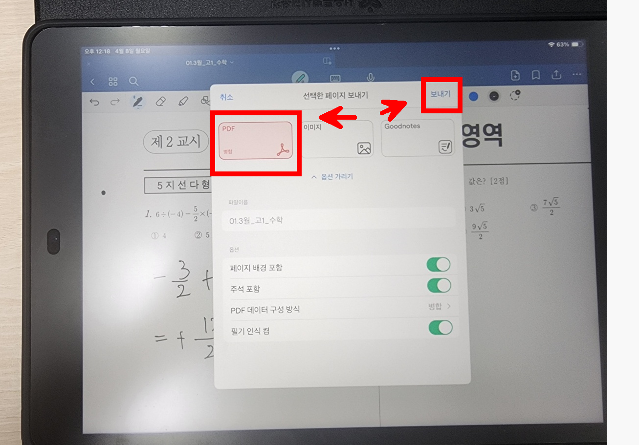 이외에도, 굿노트 파일을 내보내고 싶으면 아래 버튼을 누른다.