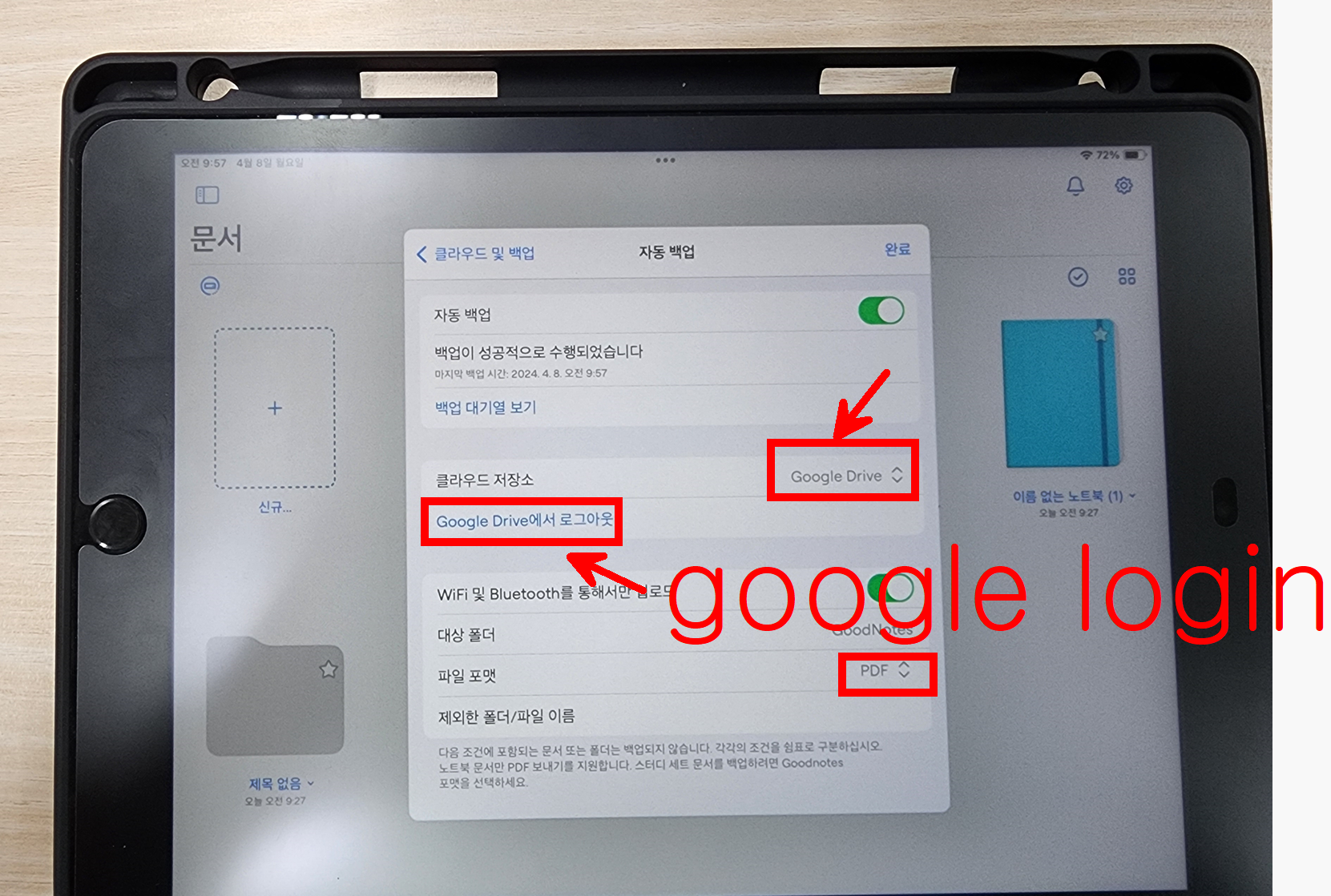 아이클라우드 동기화를 하고, 자동 백업 장소는 구글 드라이브로 지정해 준다.
