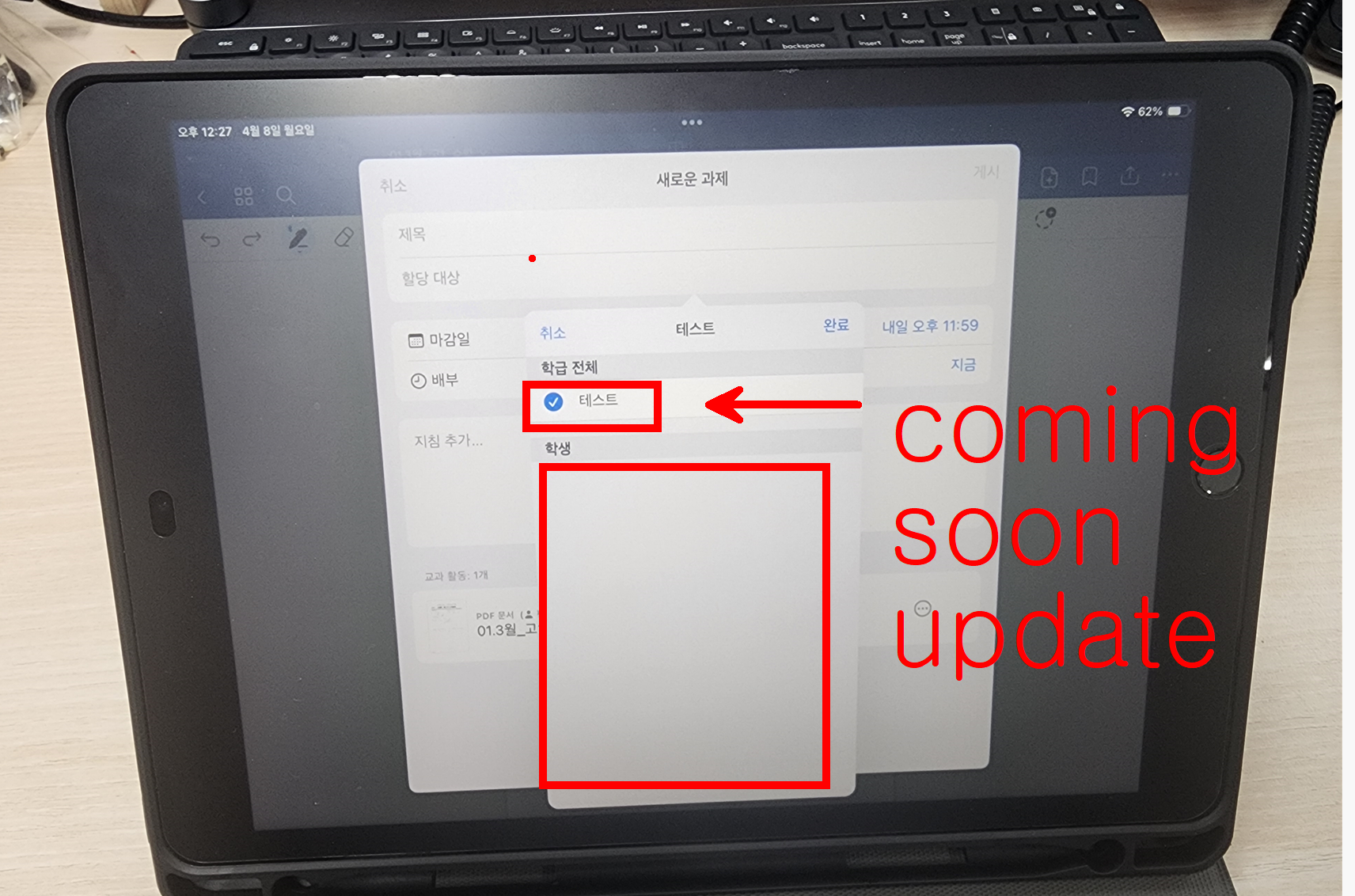 할당 대상에 1학년 1반 이런식으로 반을 체크하면 되는데, 곧 업데이트 해 두겠다.