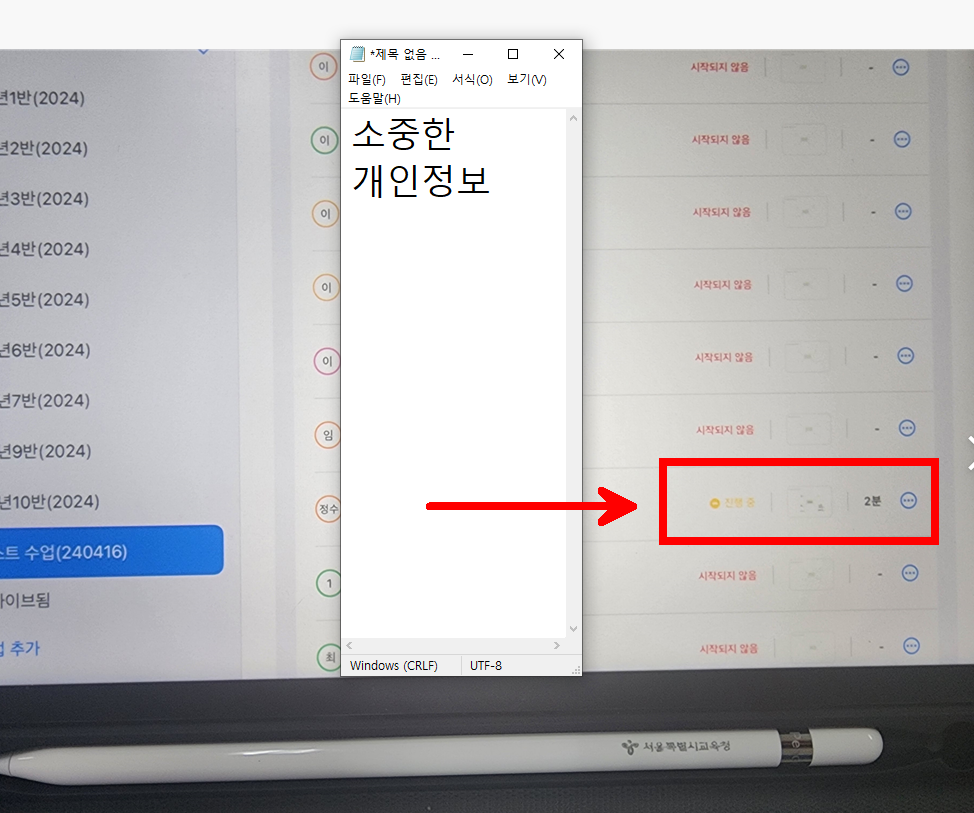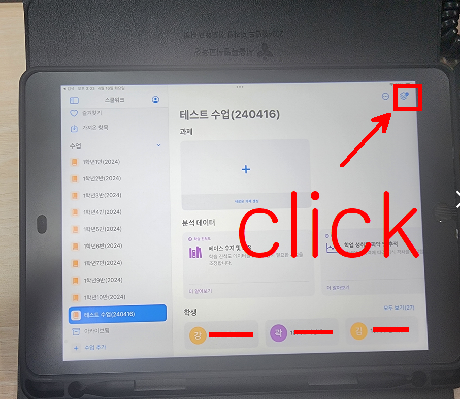 학생은 본인 아이패드에서 과제를 수행한다.