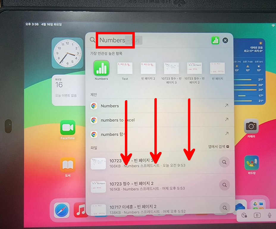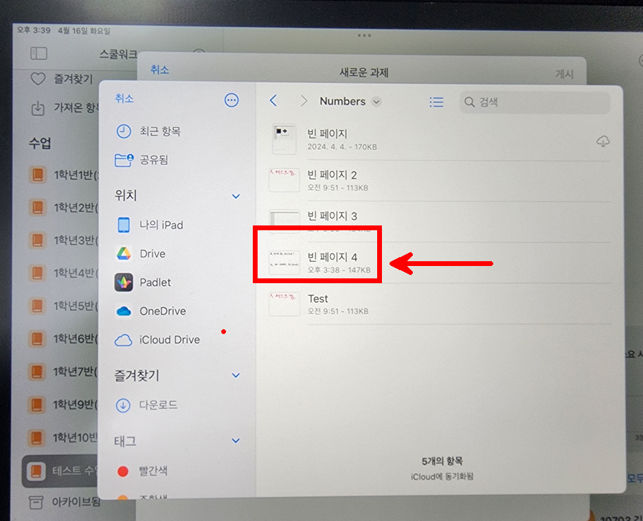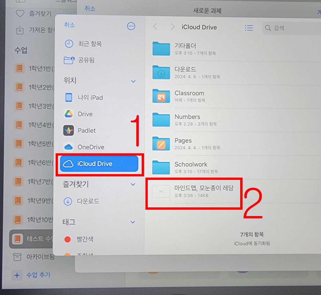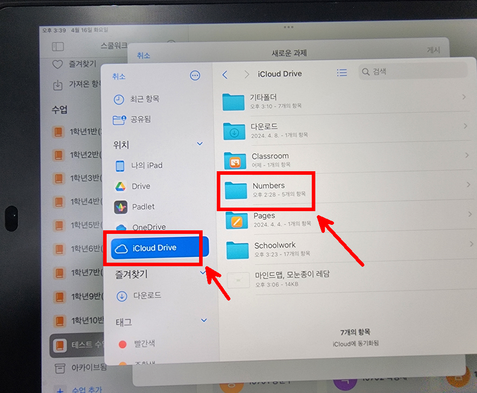 학습 활동에서 아이클라우드-넘버스 폴더를 연다.