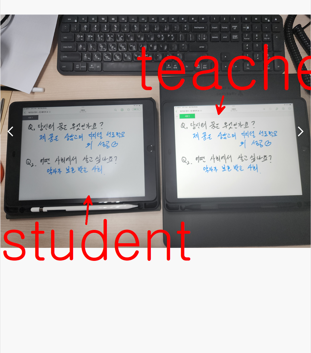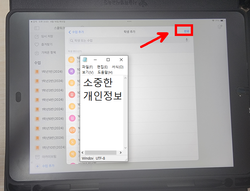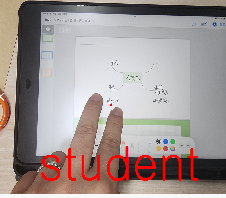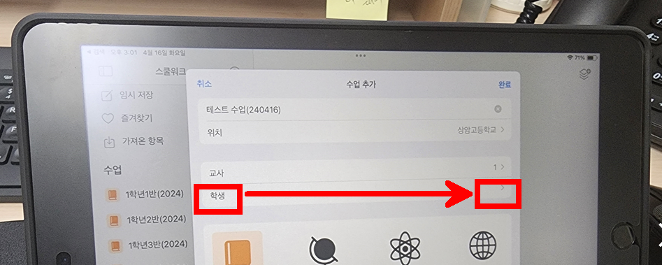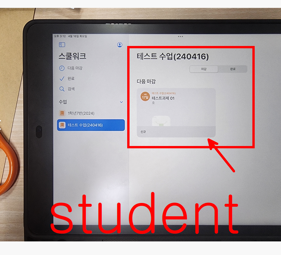 학생은 본인 아이패드에서 과제를 수행할 수 있다.