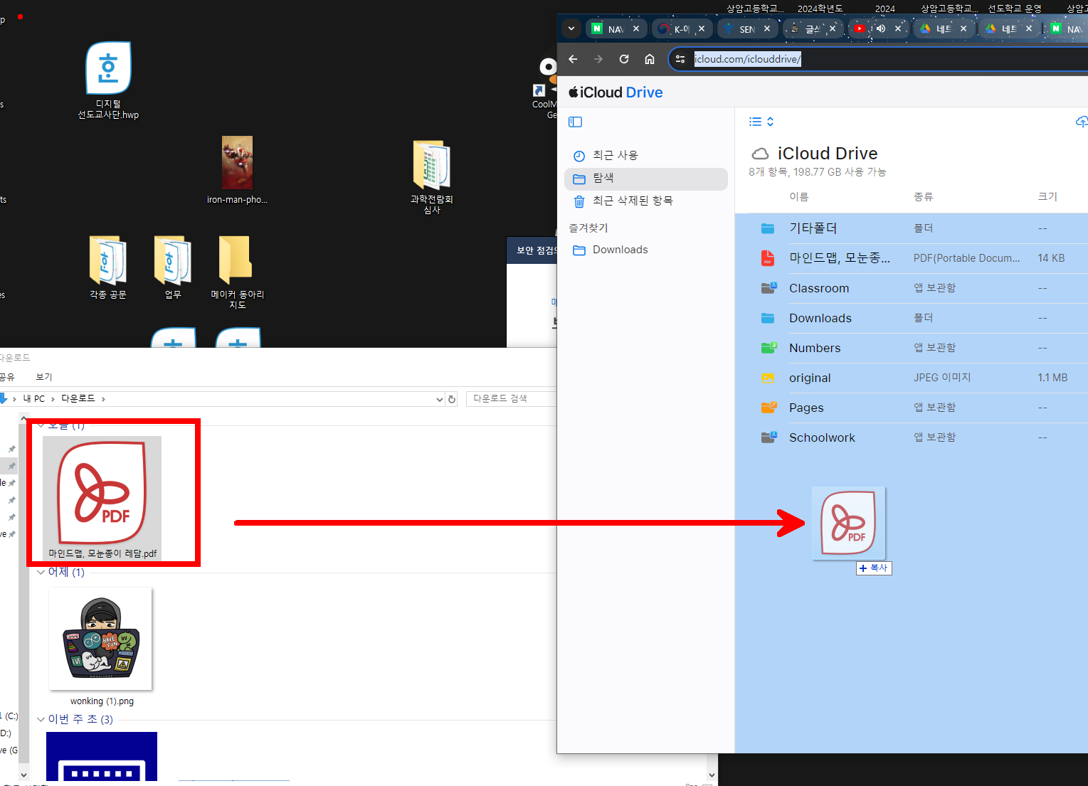 다운로드 받은 pdf 파일을 아이클라우드 드라이브에 넣는다.
