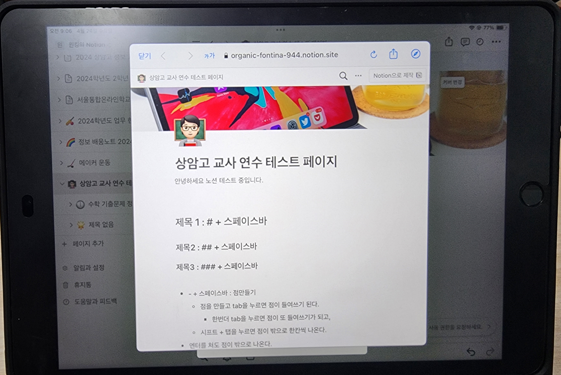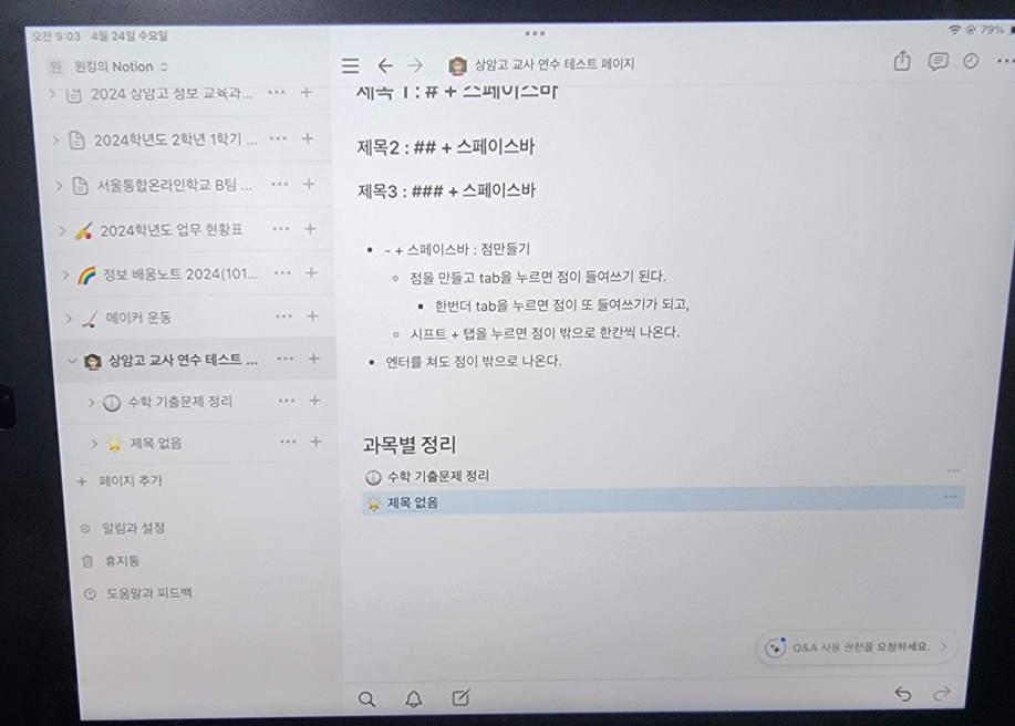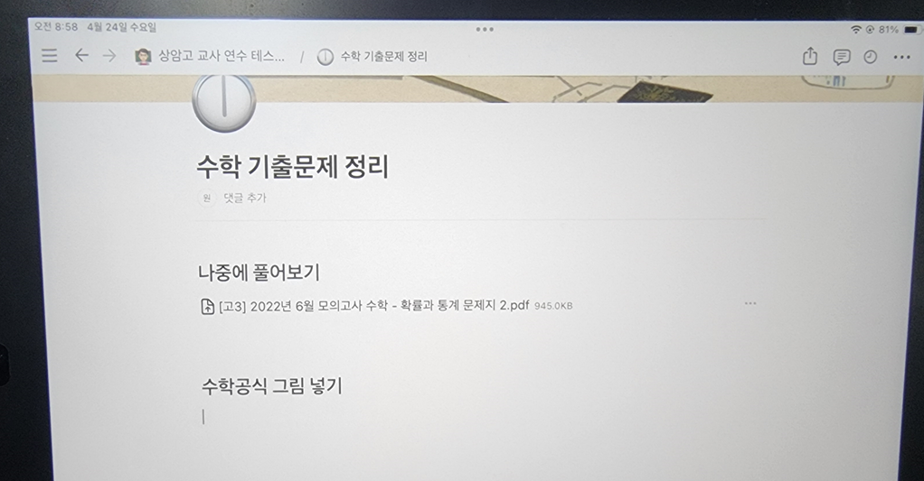 만약 노션으로 수업자료를 생성한다면, 아이패드 보다는 개인 PC에서 작업하는 것이 더 빠르고 쾌적하다.