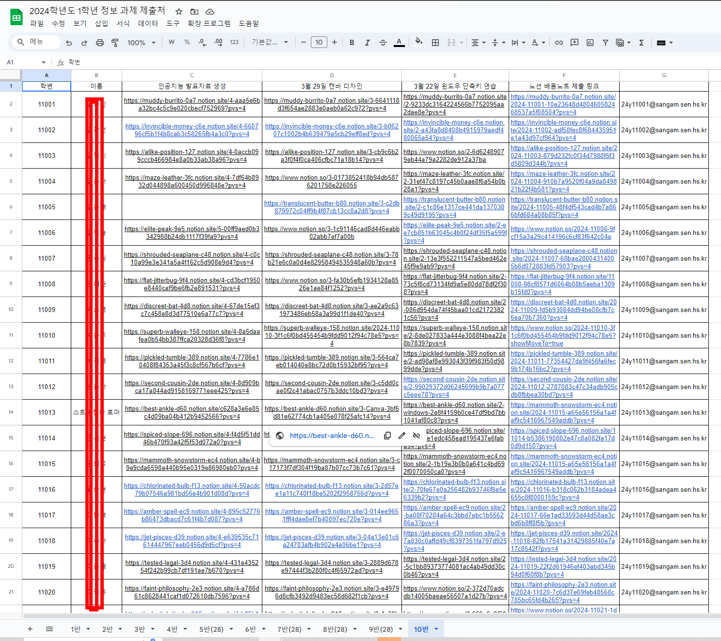 매수업마다 구글 시트에서 노션 페이지에 실습 결과물 제출