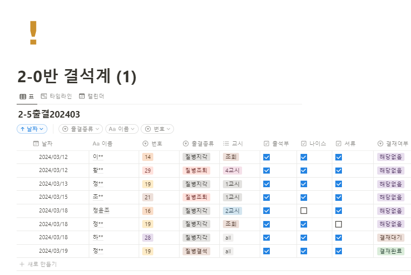 학급 전달사항