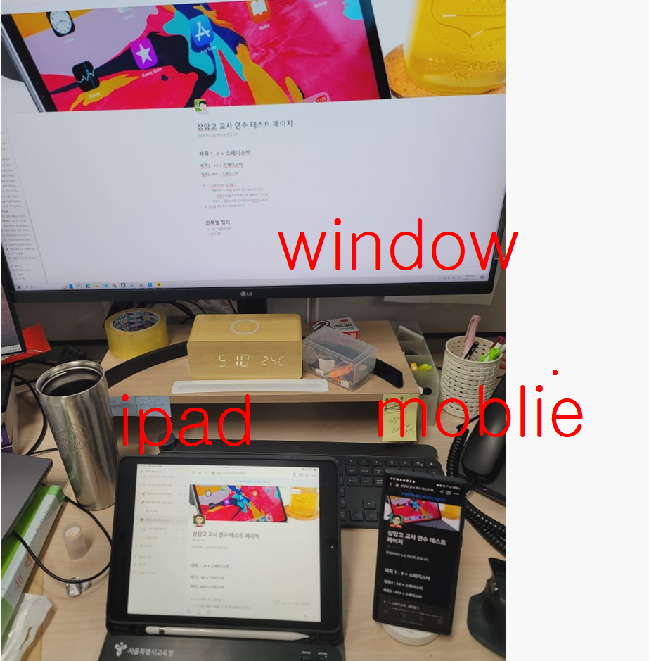 노션의 강점중에 하나는 윈도우(웹), 아이패드, 스마트폰 각각에 최적화 되어 있고, 계정 로그인으로 데이터를 실기간 동기화 할 수 있다.
