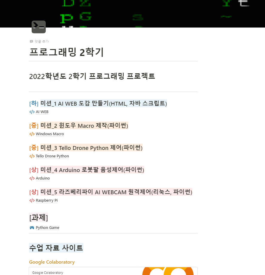 프로그래밍 2학기 | Notion