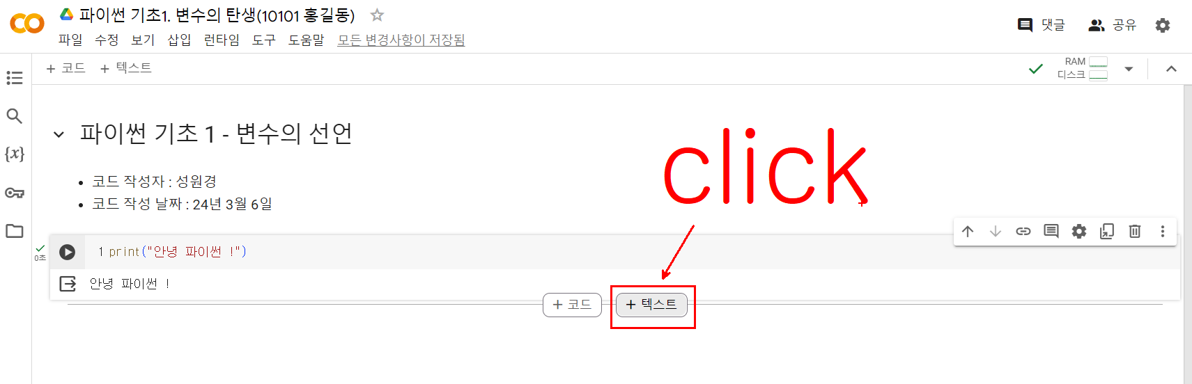 3. 오늘의 파이썬 개념 한 스푼 : 바로 변수 !