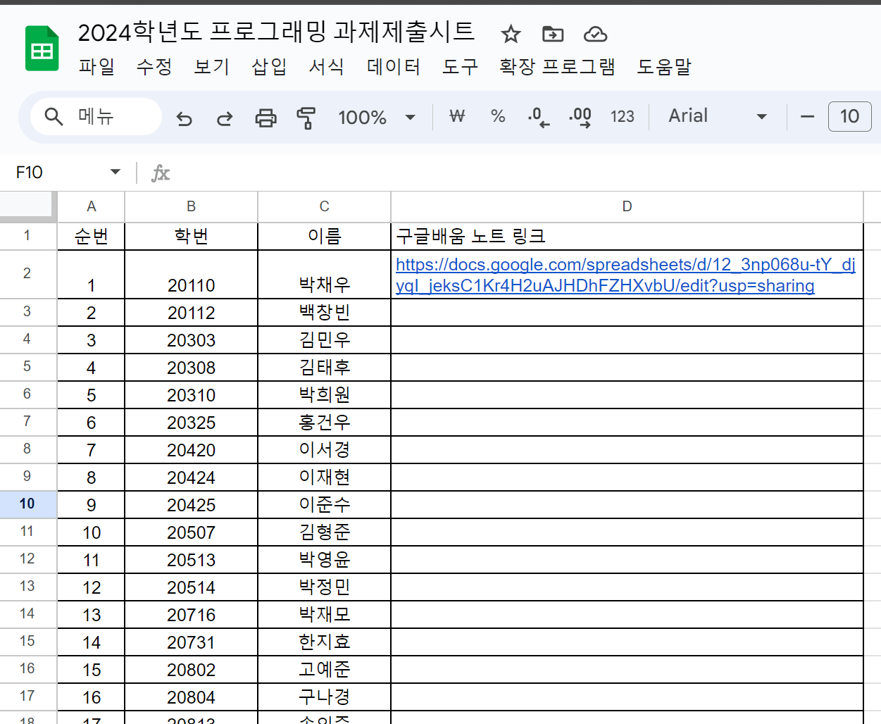 A반 순번,학번,이름,구글배움 노트 링크 1,20110,박채우 2,20112,백창빈 3,20303,김민우 4,20308,김태후 5,20310,박희원 6,20325,홍건우 7,20420,이서경 8,20424,이재현 9,20425,이준수 10,20507,김형준 11,20513,박영윤 12,