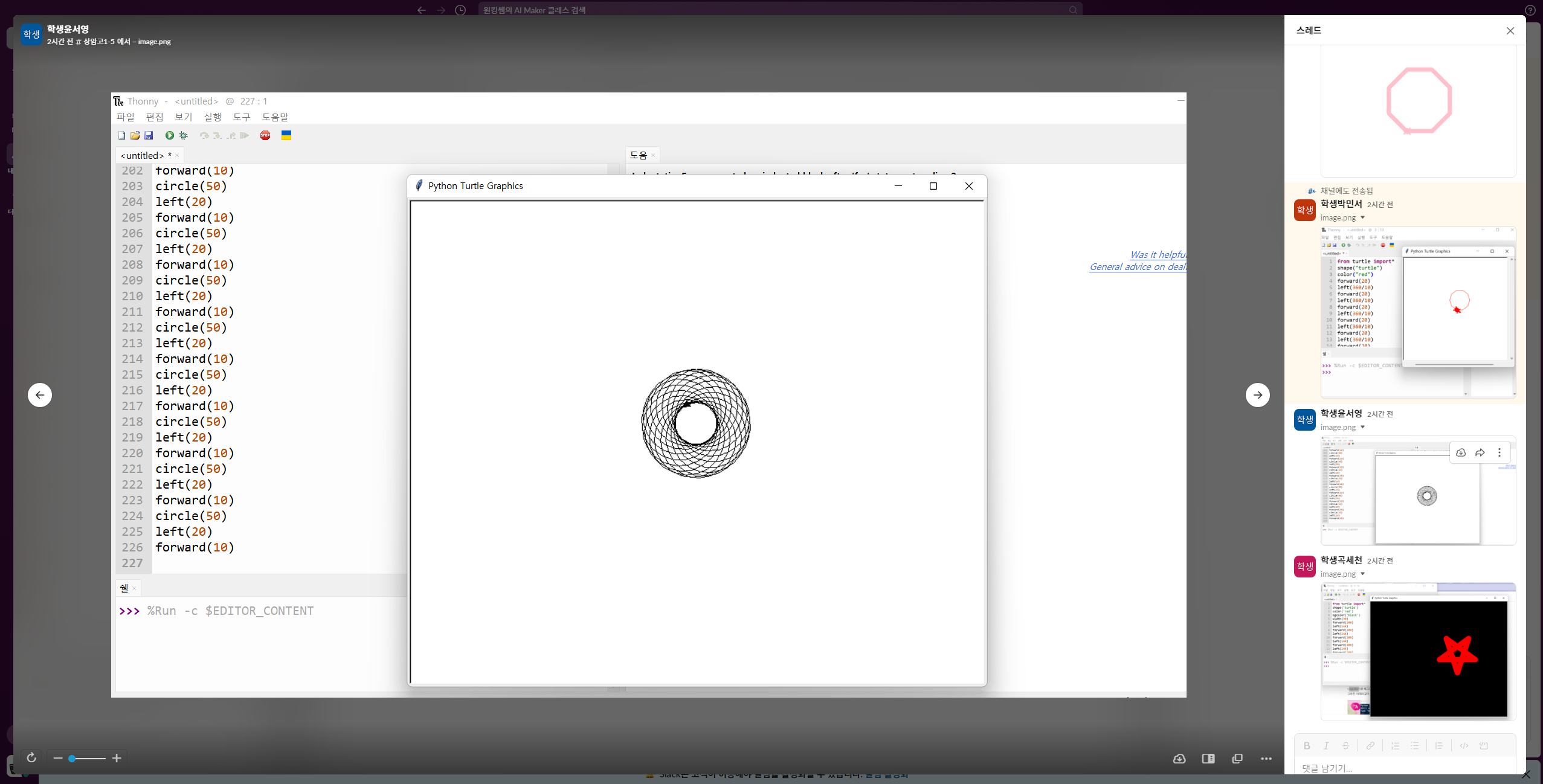[자유 미션 1] 구글에서 파이썬 터틀 함수를 검색해서 다양한 기능의 함수 명령어를 확인 뒤 나만의 터틀을 그림을 그려보자.