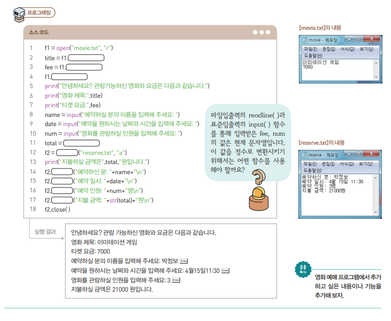 교과서 136쪽 : 파일 입출력