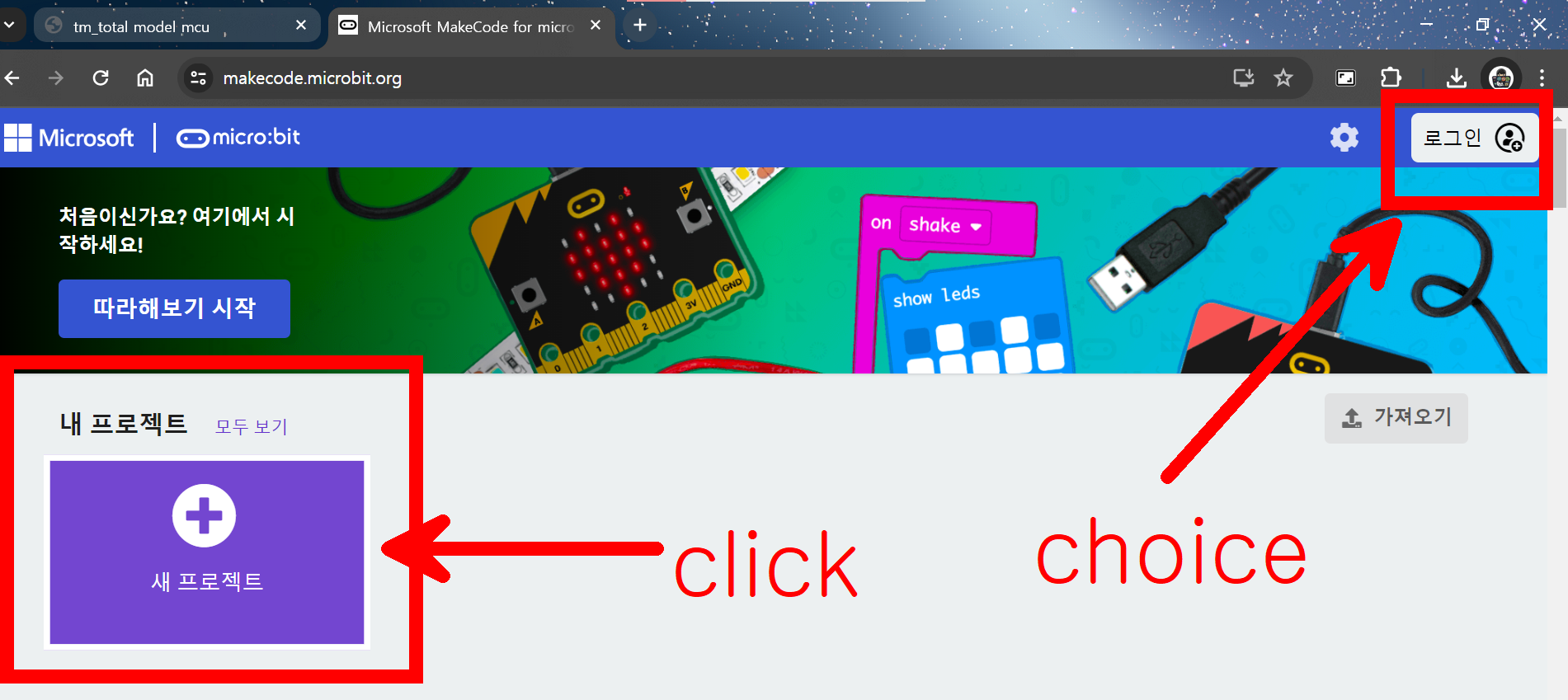 [1. 프로젝트 시작, 녹음] 구글 검색창에서 티처블머신이라고 검색하세요. https://teachablemachine.withgoogle.com/. 시작하기를 클릭합니다.. 오디오 프로젝트를 클릭합니다.. 배경 소음을 녹음하기 위해,