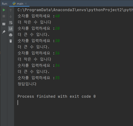 즉 int type의 number는 35의 값이 들어간 반면, str type의 guess는 '35'가 들어가 이 둘은 같지 않은 것이다.