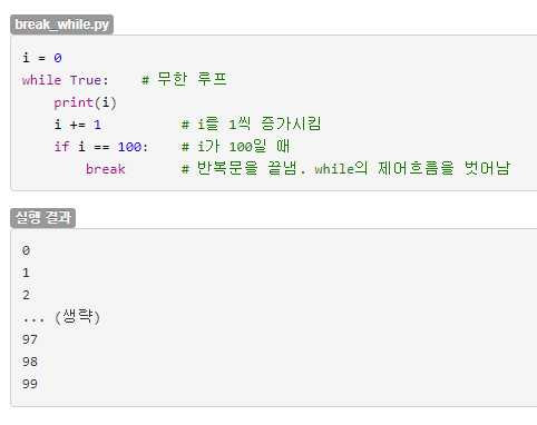 힌트) while - break 문의 사용 예제