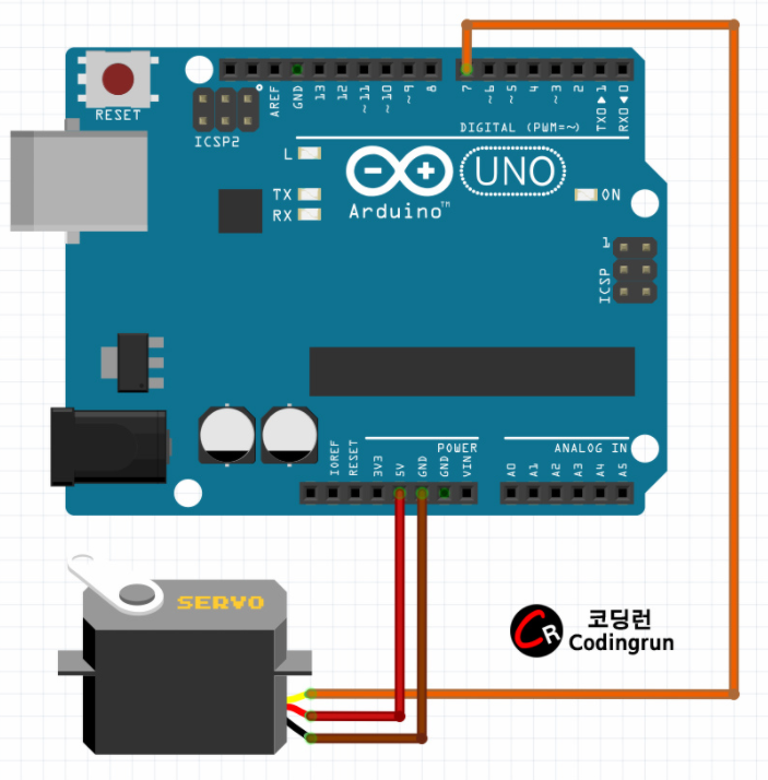 servo.attach(7); //servo 서보모터 7번 핀에 연결
