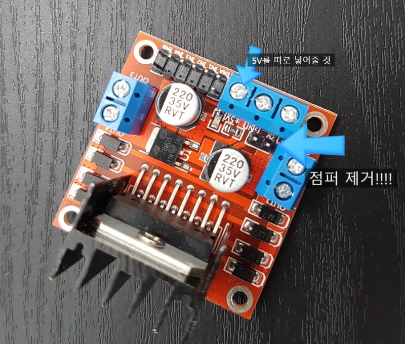 - 모터가 2개부터는 외부 전원에서 전원을 모터드라이브에 추가로 공급해 주어야 한다.