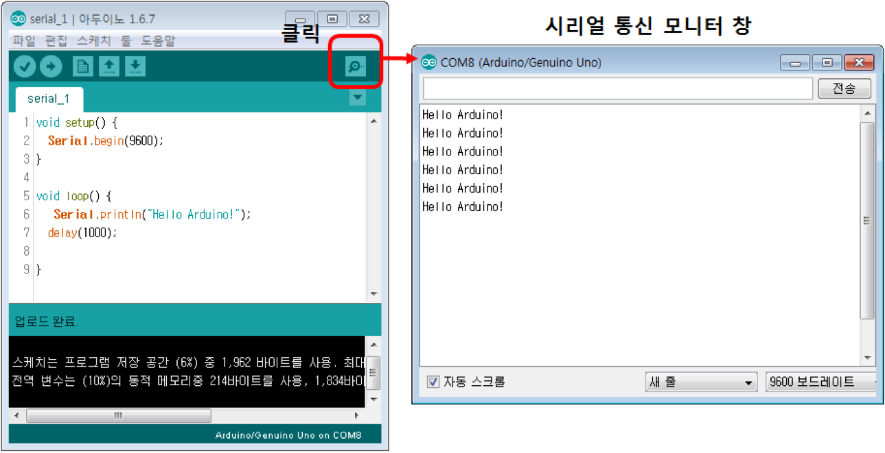 -> 컴퓨터로 아두이노를 제어하기 위한 통신 포트