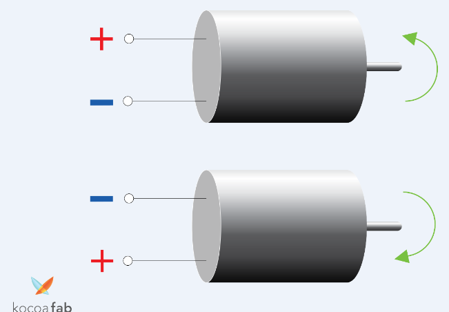 - 전압의 방향을 반대로 입력하면 모터도 반대로 돌아간다.