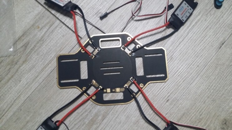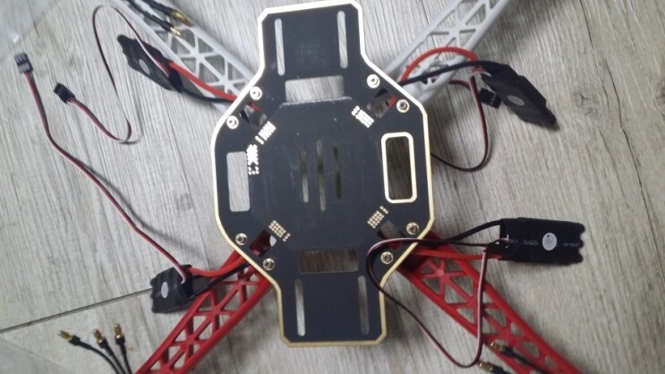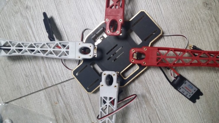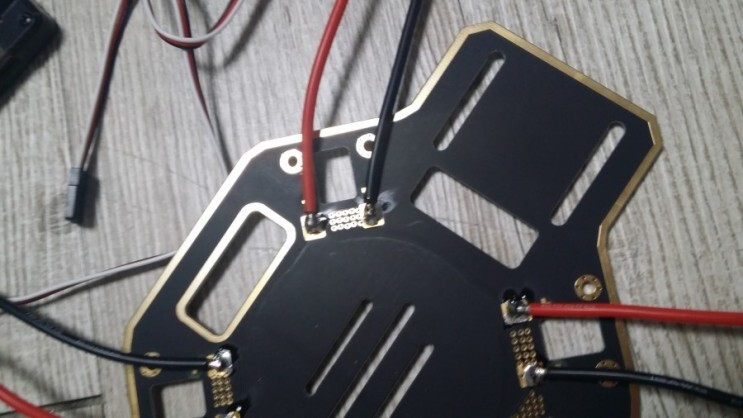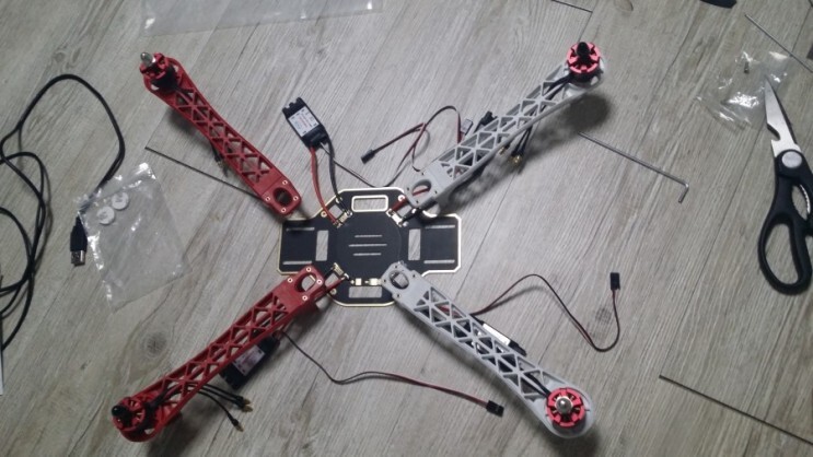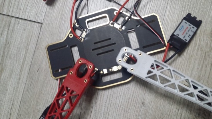 드론은 앞뒤가 있으니 먼저 앞을 먼저 결정하시고 두개를 각기 다른모터로 연결해주셔야 합니다.