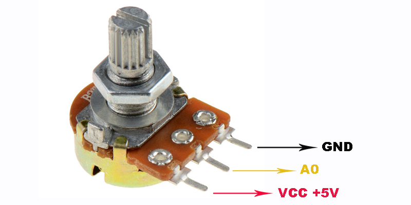 - 가운데 A0 핀은 포텐셜 미터의 로터의 회전값을 전송해 주는 데이터 핀으로