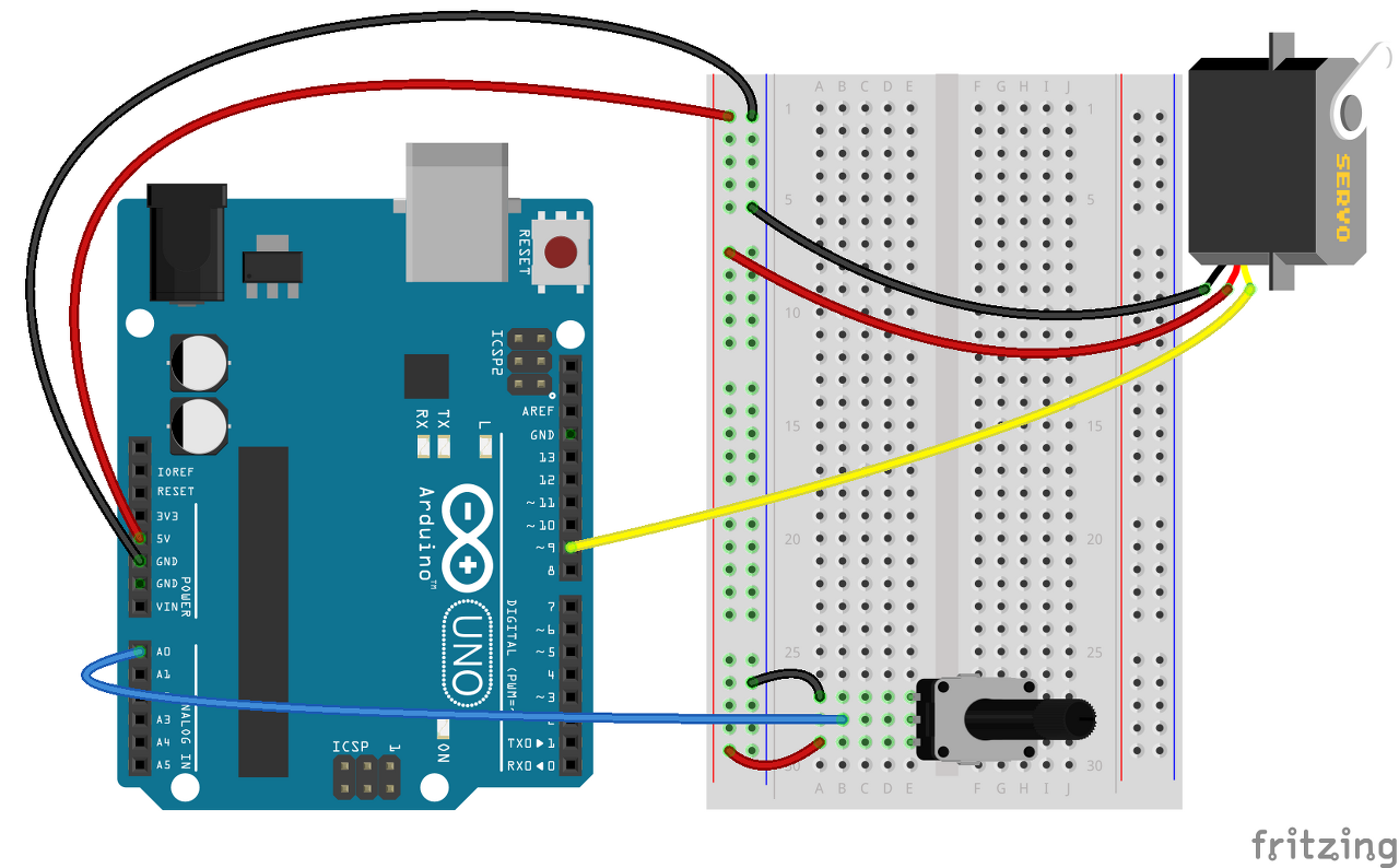 1-3-4. 포텐셜미터(가변저항)으로 서보모터 제어하기