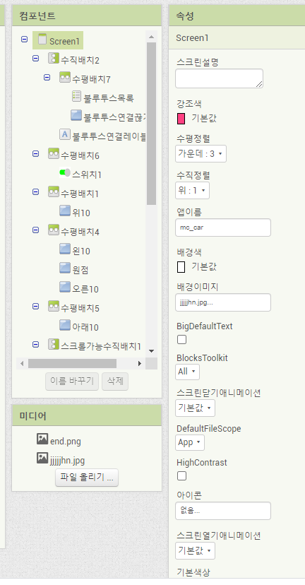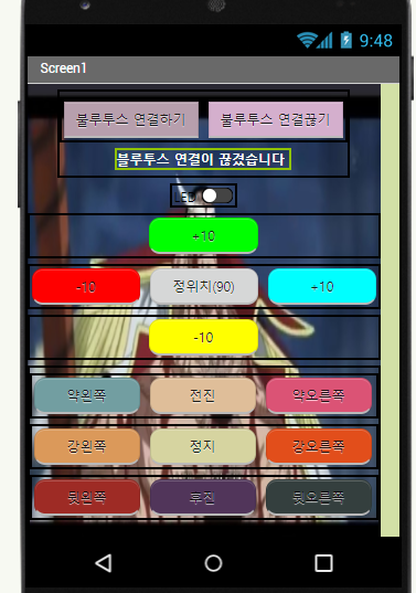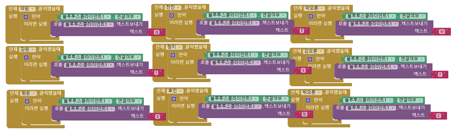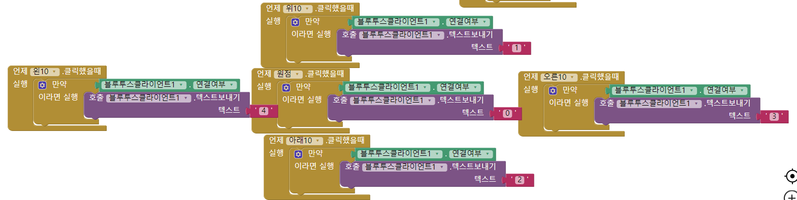 1) 앱 인벤터로 직접 제작 : 1, 2, 3, 4 등등 신호를 보내 아두이노 에게 송신