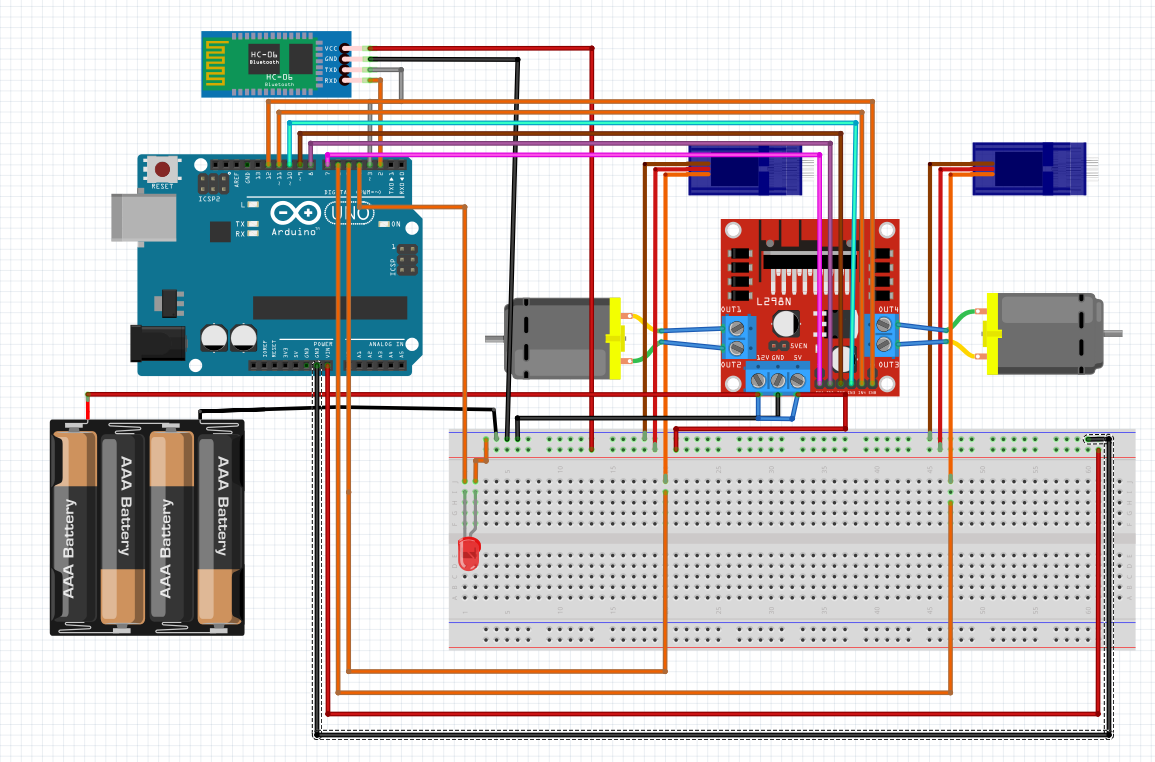 [최종 과제] 블루투스 + DC 모터 2개 + 서보모터 2개 + led
