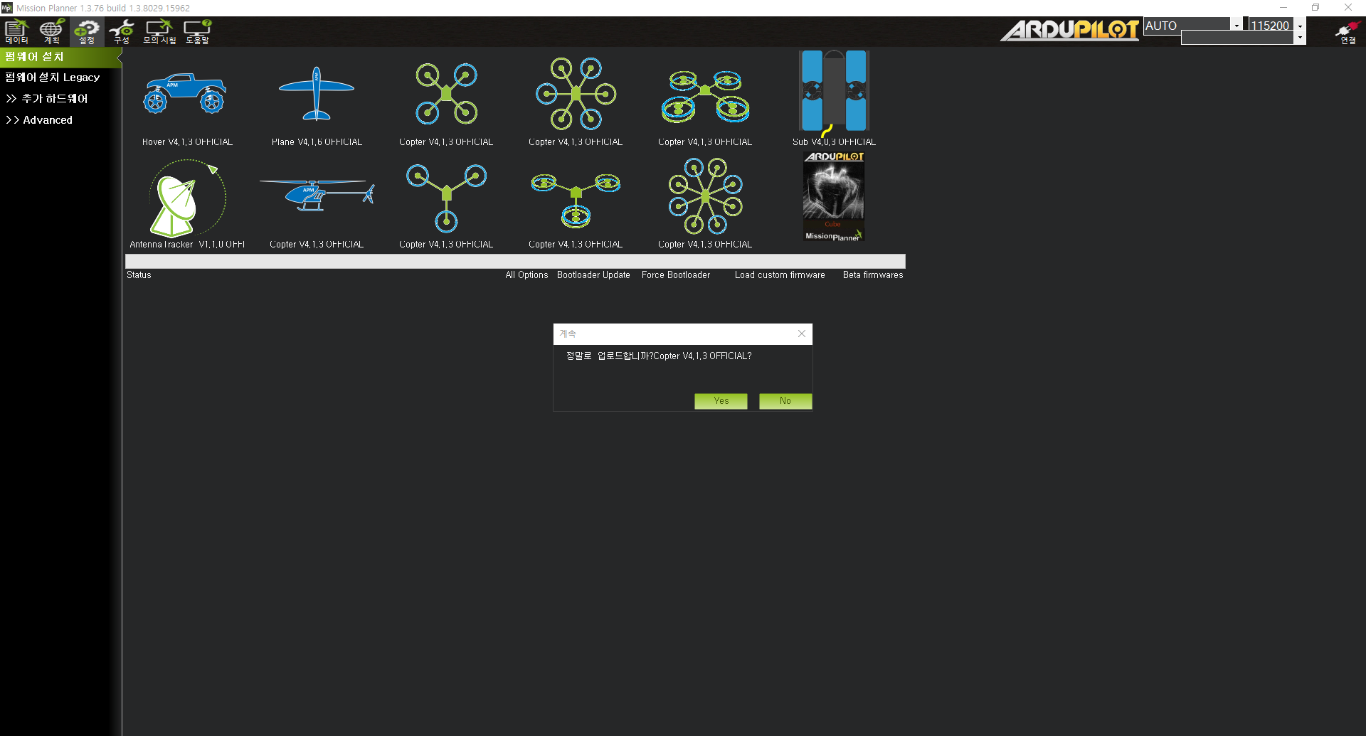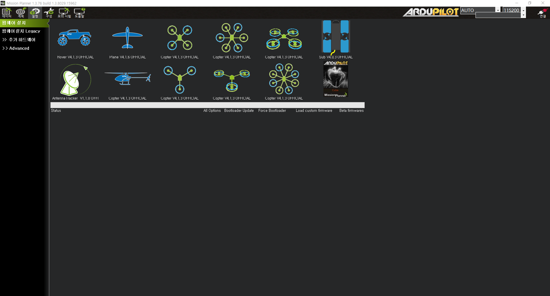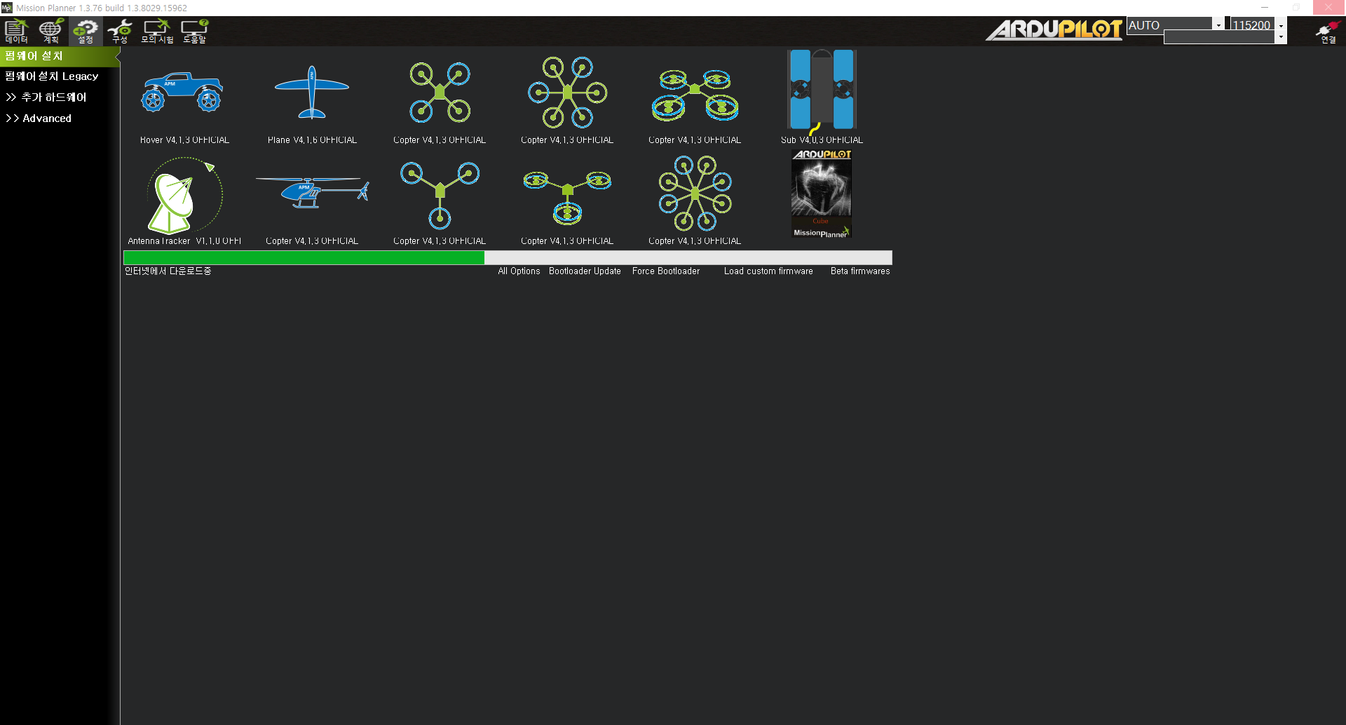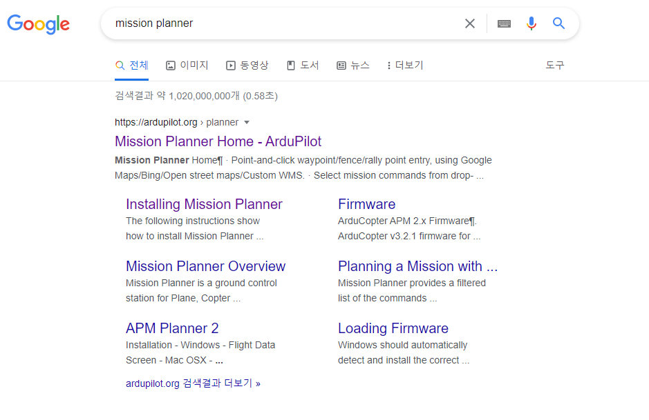 - 구글에 mission planner 검색 및 다운로드