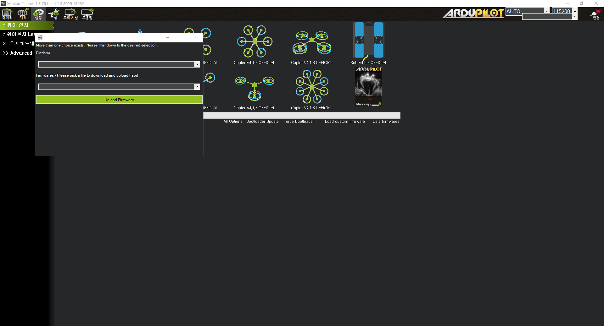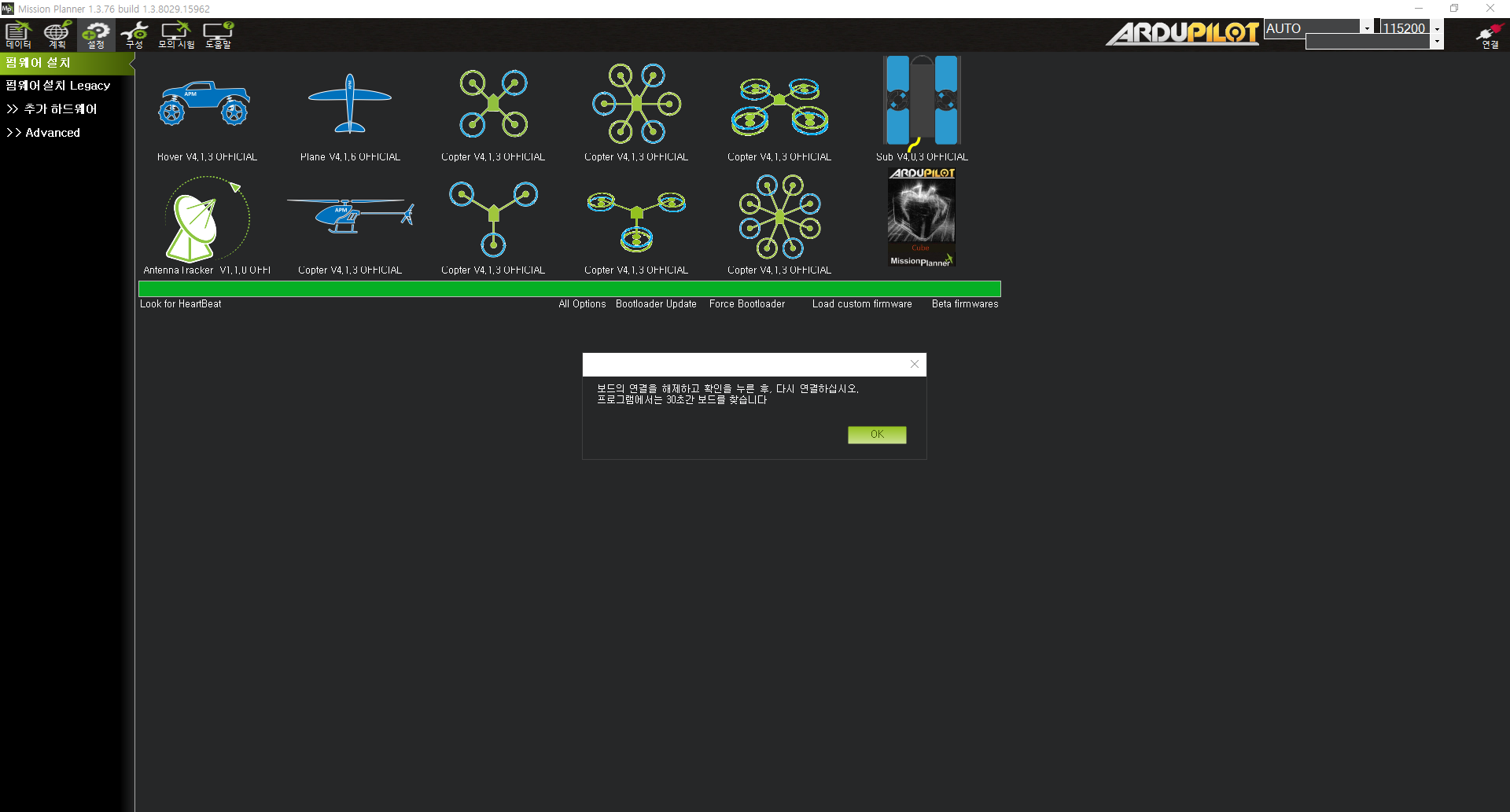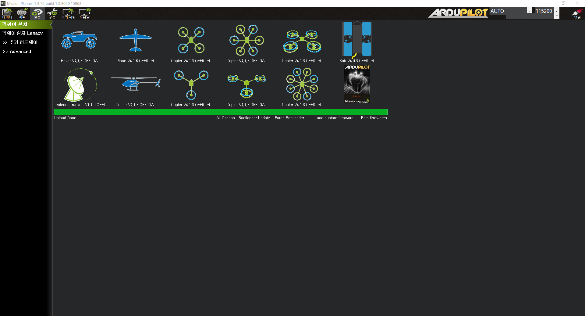 - 구글에 mission planner 검색 및 다운로드