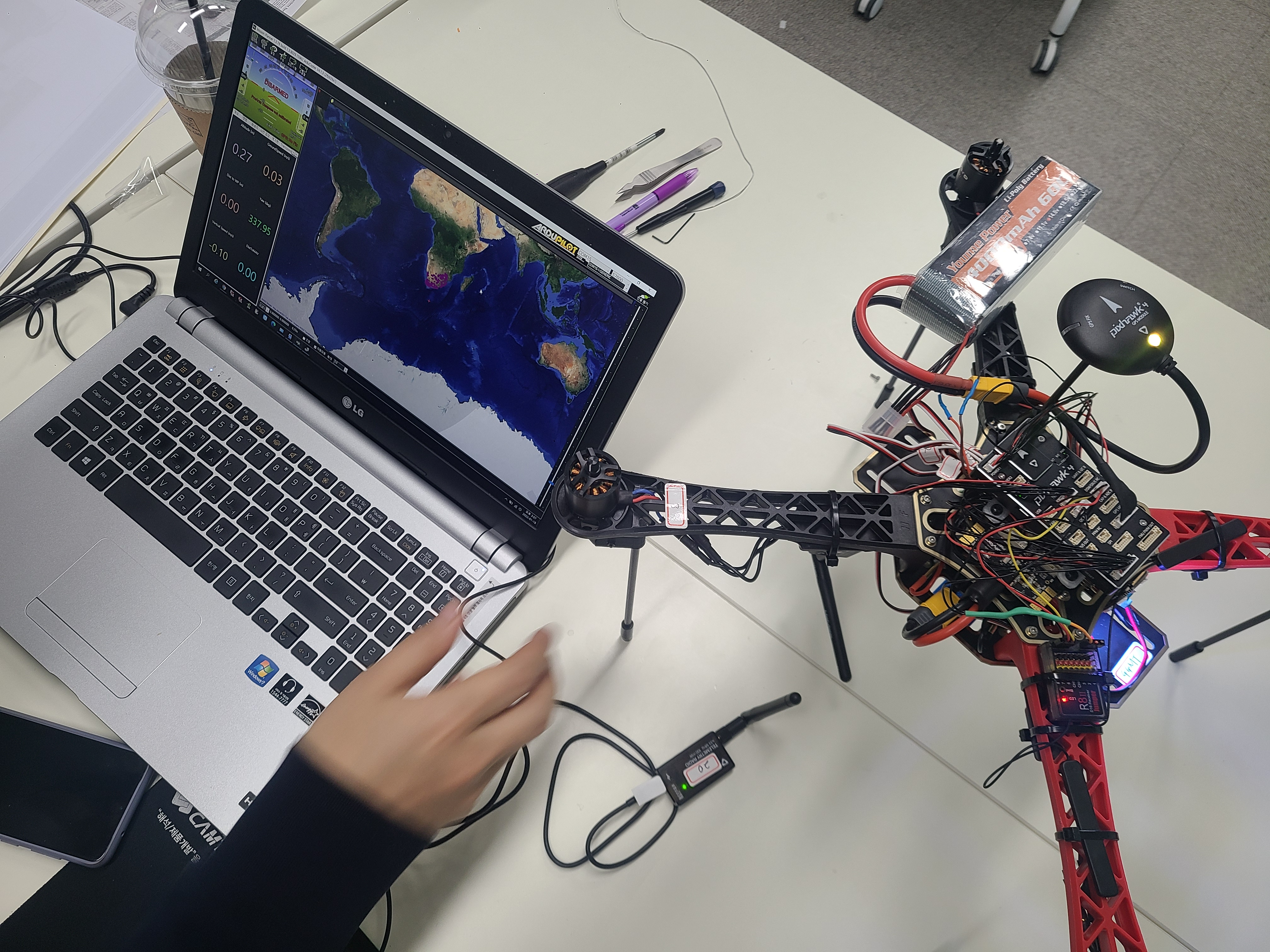 그 이후 기체를 기울여 무선 송수신이 잘되는지 확인한다.