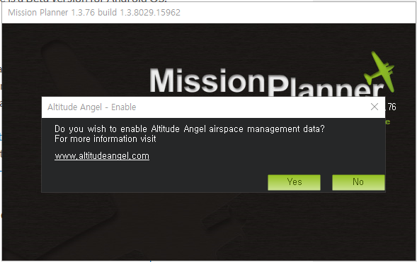 - 로그인 하라고 하지만 가볍게 무시하고 그냥 닫기를 클릭하면 미션플래너가 실행된다.