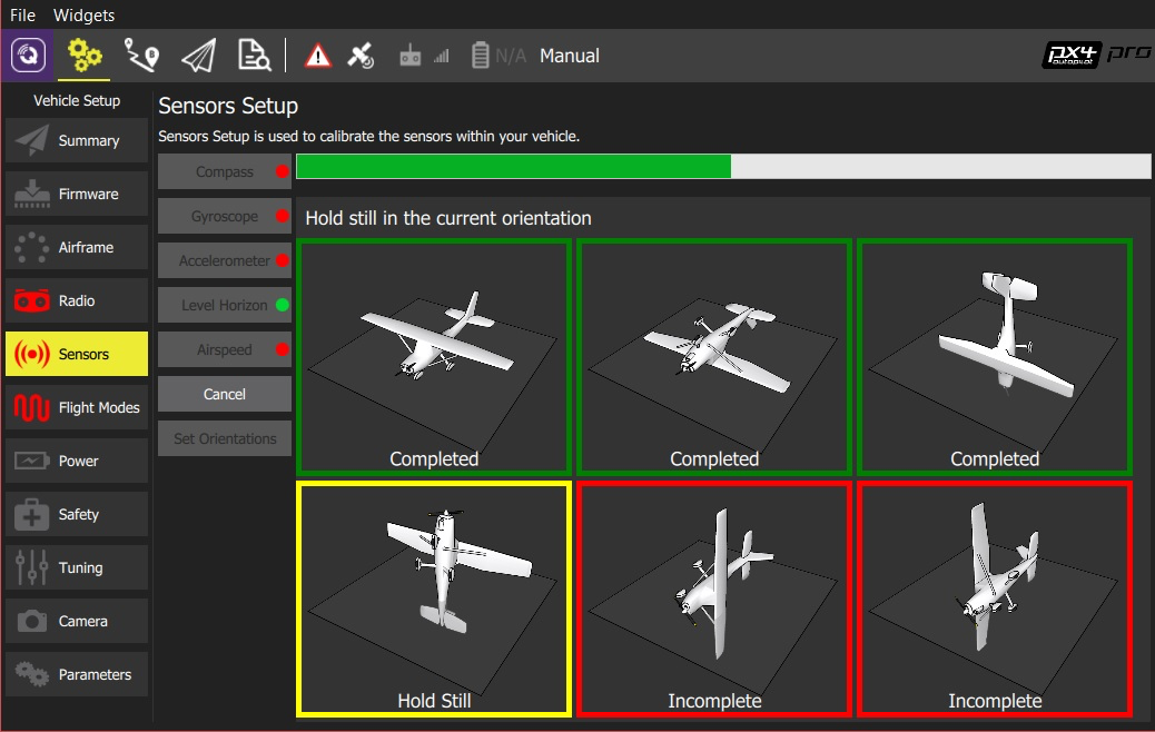 스타트 버튼을 누르고 드론을 x축, y축, z축 방향으로 회전시켜주어야 한다.
