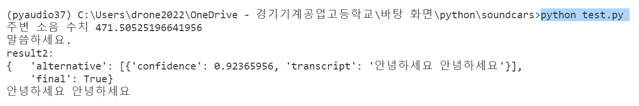 python test.py # 현재 코드가 있는 파일명, 각자 다를 수 있음.