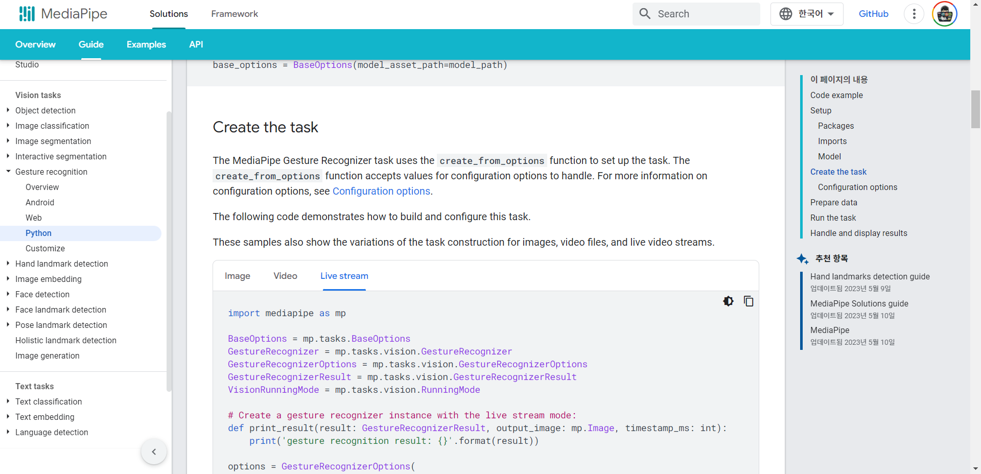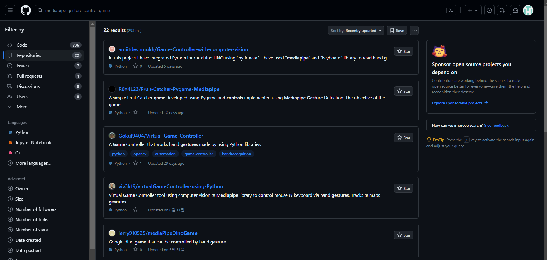 오픈소스 1 : mediapie 기반 gesture 인식 컨트롤 오픈소스 찾기