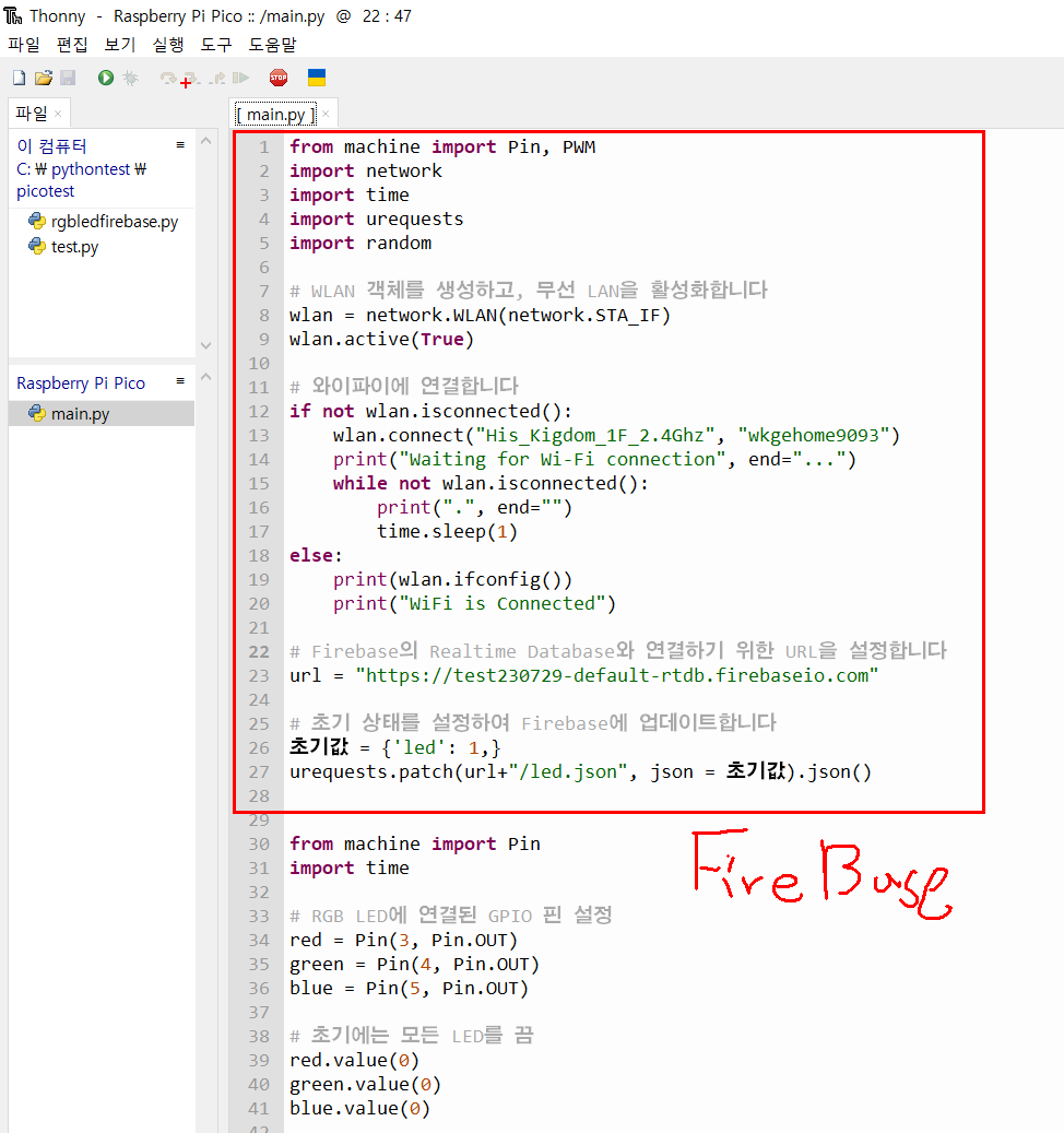 [실습 4] 파이어베이스 Realtime database와 라즈베리파이 피코 연동하기